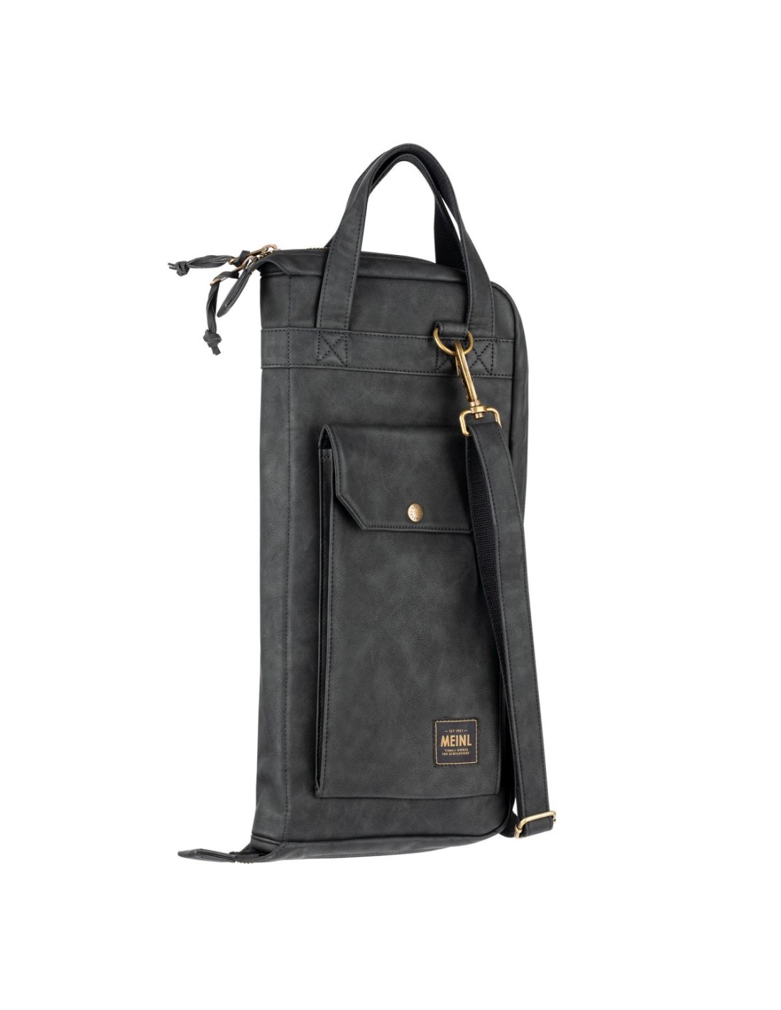 FUNDA PARA BAQUETAS La bolsa Meinl Vintage Hyde Stick tiene toda la facilidad de uso de una bolsa de viaje con una apariencia clásica. Nuestro exterior de cuero sintético ultraduradero y el interior de lona de algodón de 24 onzas mantienen una vida útil de uso. Dentro del compartimento principal hay cinco bolsillos para organizar una gran cantidad de baquetas, cepillos, varillas y mazos. Además, hay tres bolsillos para accesorios de diferentes tamaños para acomodar piezas más pequeñas o efectos de sonido. Esta bolsa para baquetas viene equipada con ganchos de piso de longitud ajustable y correas para suspenderla en una posición abierta. El gran bolsillo exterior de acceso rápido tiene el tamaño adecuado para accesorios o herramientas comunes y se cierra para asegurar sus artículos. Una correa para el hombro ajustable/extraíble y asas de polipiel reforzadas te permiten transportar cómodamente este bolso al concierto o al estudio. Entrar en el bolso es fácil gracias a las grandes lengüetas de cremallera que vienen con largos tiradores de cuero sintético. Los bolsos Meinl Vintage Hyde están diseñados para un estilo sobrio y atemporal, al mismo tiempo que son tan prácticos como siempre para cualquier tipo de baterista viajero. Disponible en negro, marrón oscuro o marrón claro.
