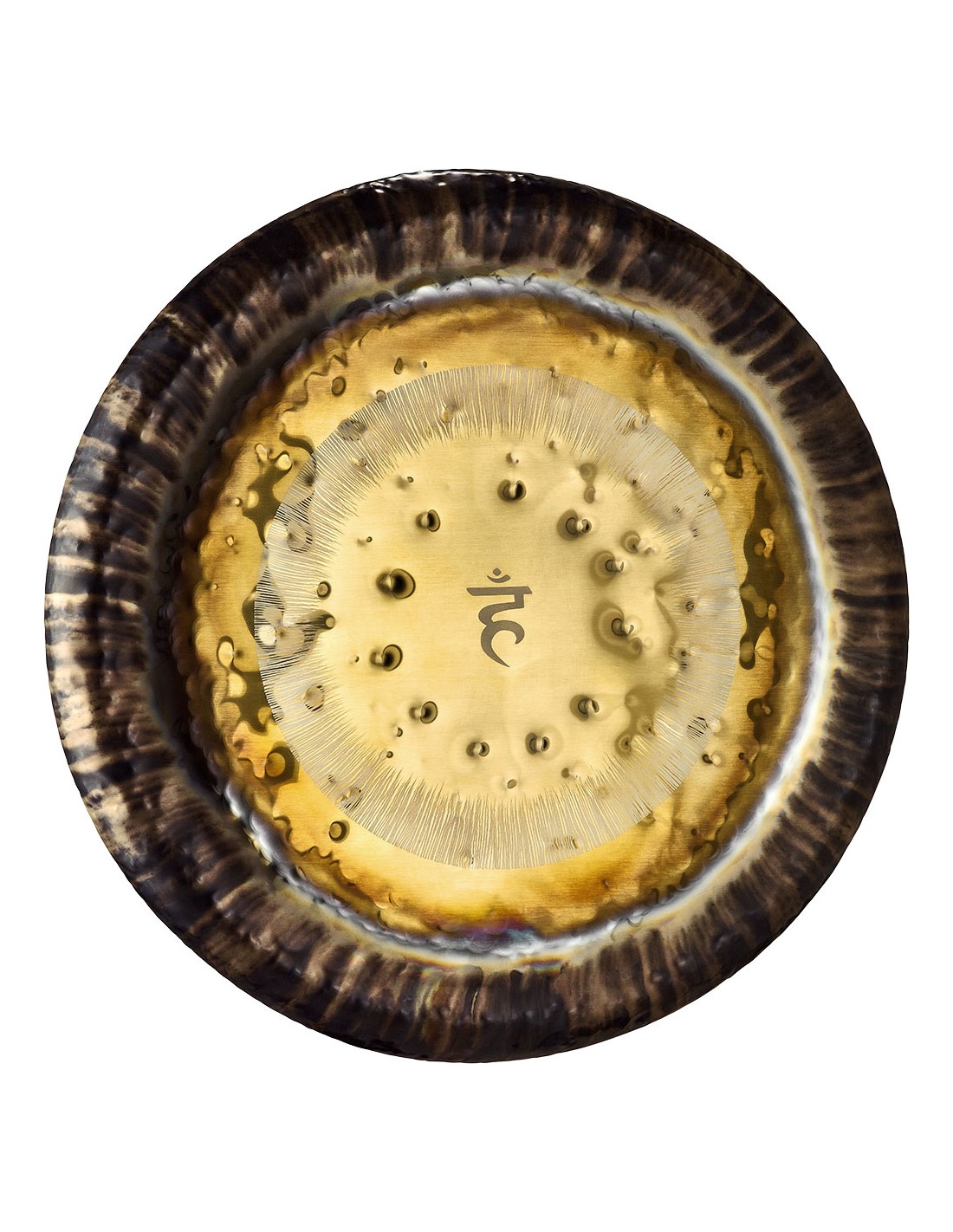 GONGS 'G32TC5. Throat Chakra Gong, 32'' / 80 cm, 141,27 Hz / C2#. Los Chakra Gongs de Sonic Energy son piezas de artesanía hechas 100% a mano en Alemania. Cada gong está afinado en una frecuencia específica basada en los cálculo de Hans Coustó de la ''Octava Cósmica'' y ayudan a activar el respectivo chakra. El trabajado martilleado suma estimulación visual y crea el innegable carácter sonoro para despertar tus sensaciones. Finalmente una técnica especial de chorro de arena permite proyectar el símbolo del chakra en el centro de cada gong.