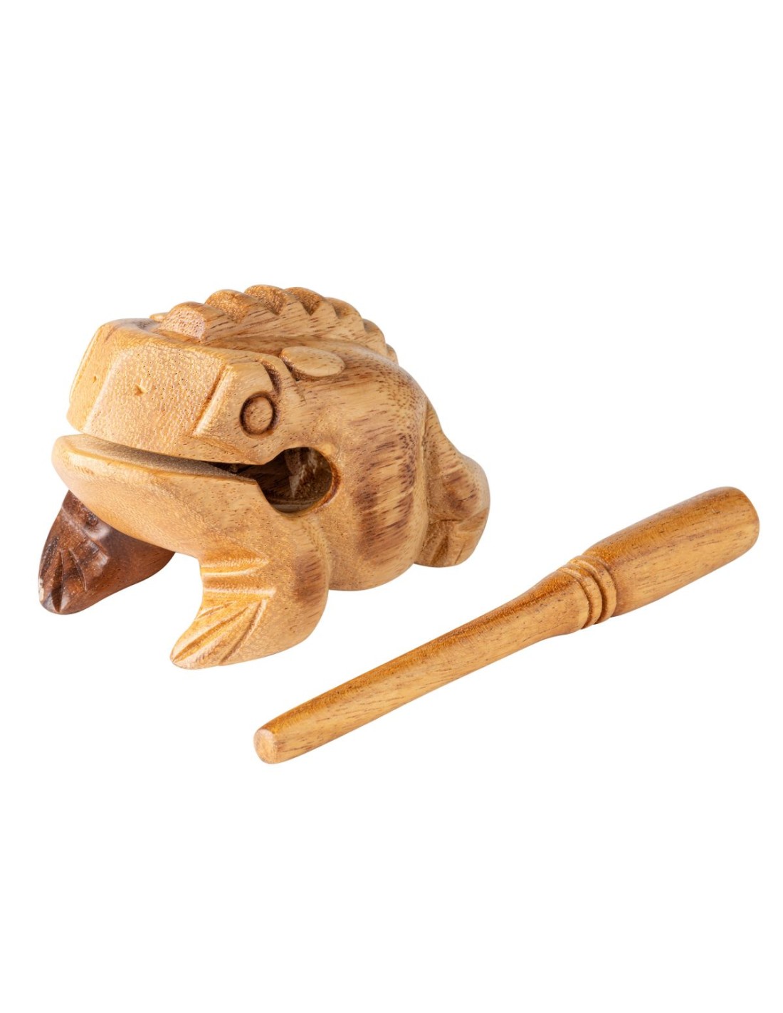 GUIRO 'El Güiro Rana de Madera de Nino Percusion es hueco por dentro con una parte posterior acanalada que crea un sonido de ''ribbit'' cuando arrastras el raspador sobre él. El aspecto del instrumento hace que sea divertido para los niños tocarlo. Produce un tono cálido y suave que combina con otros instrumentos en el salón de clases, o los niños pueden disfrutar tocándolo en la casa. Incluye raspador de madera. Efecto de sonido de rana realista Madera maciza tallada a mano Incluye raspador de madera Tamaño: 12 x 8,2 x 8 cm 4,7” x 3,2” x 3,1” Edad recomendada: 3+'