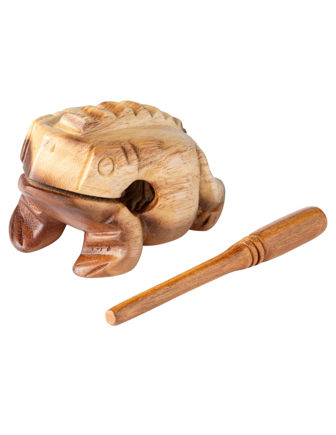 GUIRO 'El Güiro Rana de Madera de Nino Percusion es hueco por dentro con una parte posterior acanalada que crea un sonido de ''ribbit'' cuando arrastras el raspador sobre él. El aspecto del instrumento hace que sea divertido para los niños tocarlo. Produce un tono cálido y suave que combina con otros instrumentos en el salón de clases, o los niños pueden disfrutar tocándolo en la casa. Incluye raspador de madera. Efecto de sonido de rana realista Madera maciza tallada a mano Incluye raspador de madera Tamaño: 13,5 x 9 x 9 cm 5,3” x 3,5” x 3,5” Edad recomendada: 3+'