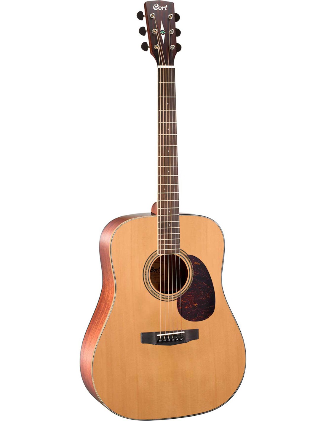 GUITARRA ACUSTICA DE 6 CUERDAS Guitarra acustica tipo Dreadnought . Tapa solida de abeto . Aros, fondo y mástil de caoba. Diapasóny puente de palo rosa. 20 trastes. Escala 25.3'. Clavijeros Diecast. Acabado Natural satinado.