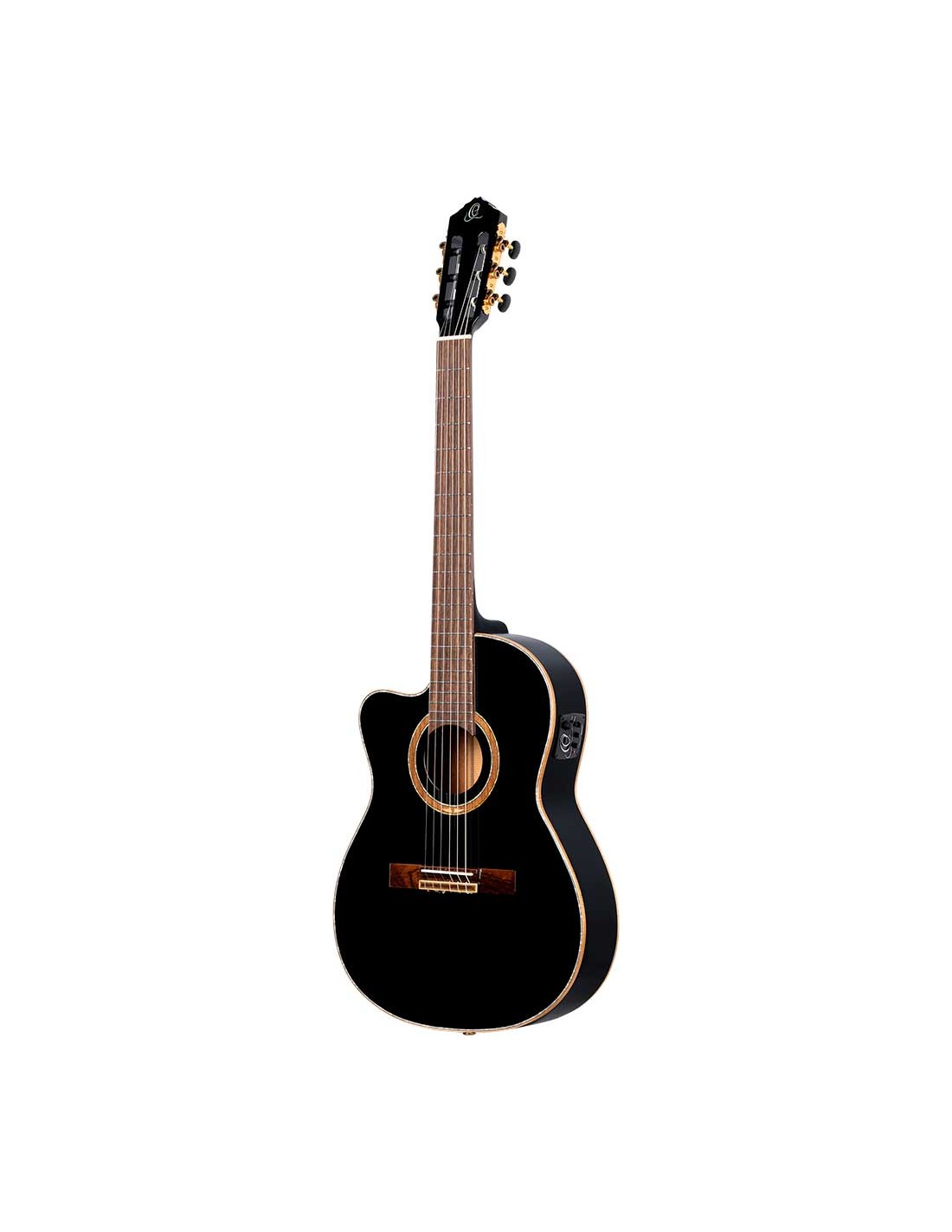 GUITARRA ELECTRO-ACUSTICA PARA ZURDOS Guitarra clásica electrificada zurda con cutaway Feel Series . Caja estrecha . Tapa de abeto de Sitka macizo, aros y fondo de caoba, mástil de caoba . Mástil slim neck , más estrecho. Alma regulable. Diapasón de palisandro. Previo Magus Pro con afinador. Acabado negro. Funda y correa deluxe incluidas.