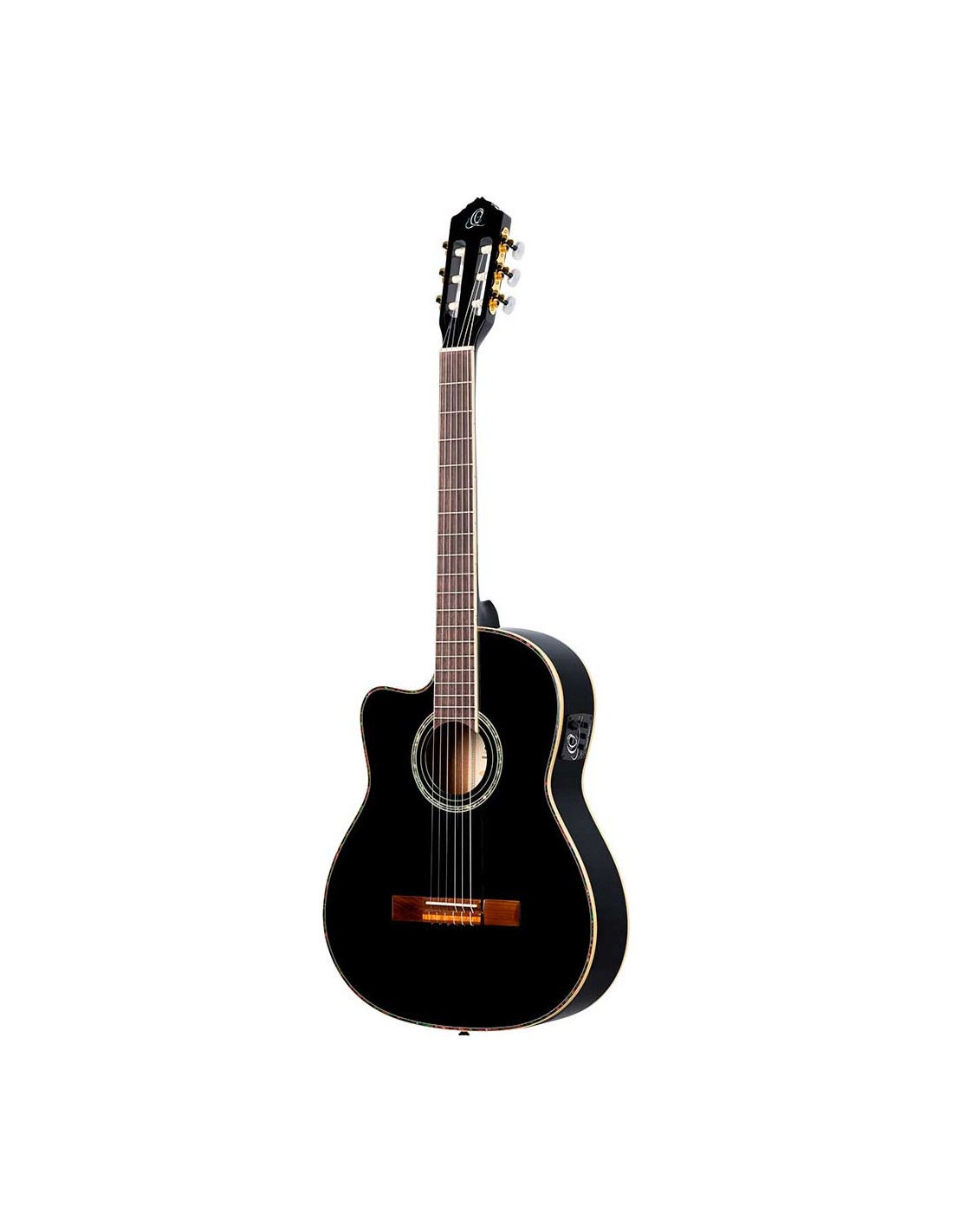 GUITARRA ELECTRO-ACUSTICA PARA ZURDOS Guitarra clásica electrificada con cutaway en color negro.