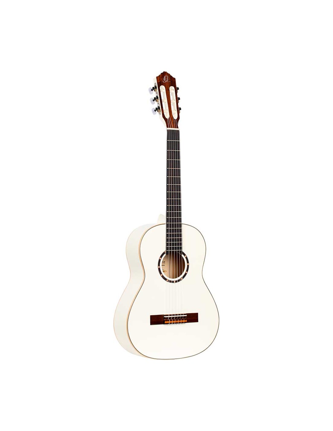 GUITARRA CLÁSICA 3/4 Guitarra clásica Family Series 3/4. Tapa de abetolaminado, aros y fondo de caoba laminada, acabadoblanco brillante. Funda incluida.