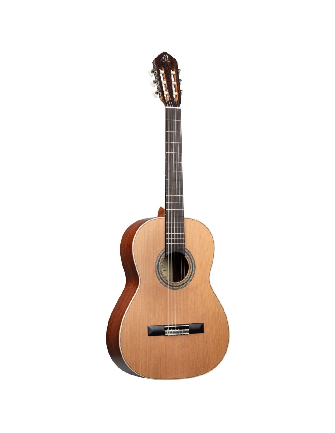 GUITARRA CLASICA 'Guitarra de cuerdas de nailon ORTEGA Serie Tradicional 4/4 de 6 cuerdas - Satén Funda de transporte profesional. Fabricada a mano en España, la Serie Tradicional utiliza las mejores maderas tonales para la construcción de guitarras. Con un sonido y una estética excepcionales a un precio increíblemente accesible, es una excelente opción para intérpretes de cualquier nivel.Serie: Serie tradicional Tamaño: 4/4 Número de cuerdas: 6 Tapa del cuerpo: Cedro macizo Tapa maciza: Sí Aros y fondo: Bubinga Acabado de aros y fondo: Acabado satinado Aros y fondo macizos: No Mástil: Caoba africana Tipo de mástil: Mástil delgado Escala (mm/pulgada): 650 mm (25,59'') Diapasón: Palosanto de la India Trastes: 19 Ancho de cejuela (mm/pulgada): 48 mm (1,89'') Puente: Palosanto de la India Clavijeros: Diseño de lira cromado, botones blancos Afinación: MiLadoSolMiMi Cuerdas: Knobloch EDQ 34.0 Tensión MEDIA/ALTA Incluye: Funda de transporte profesional'