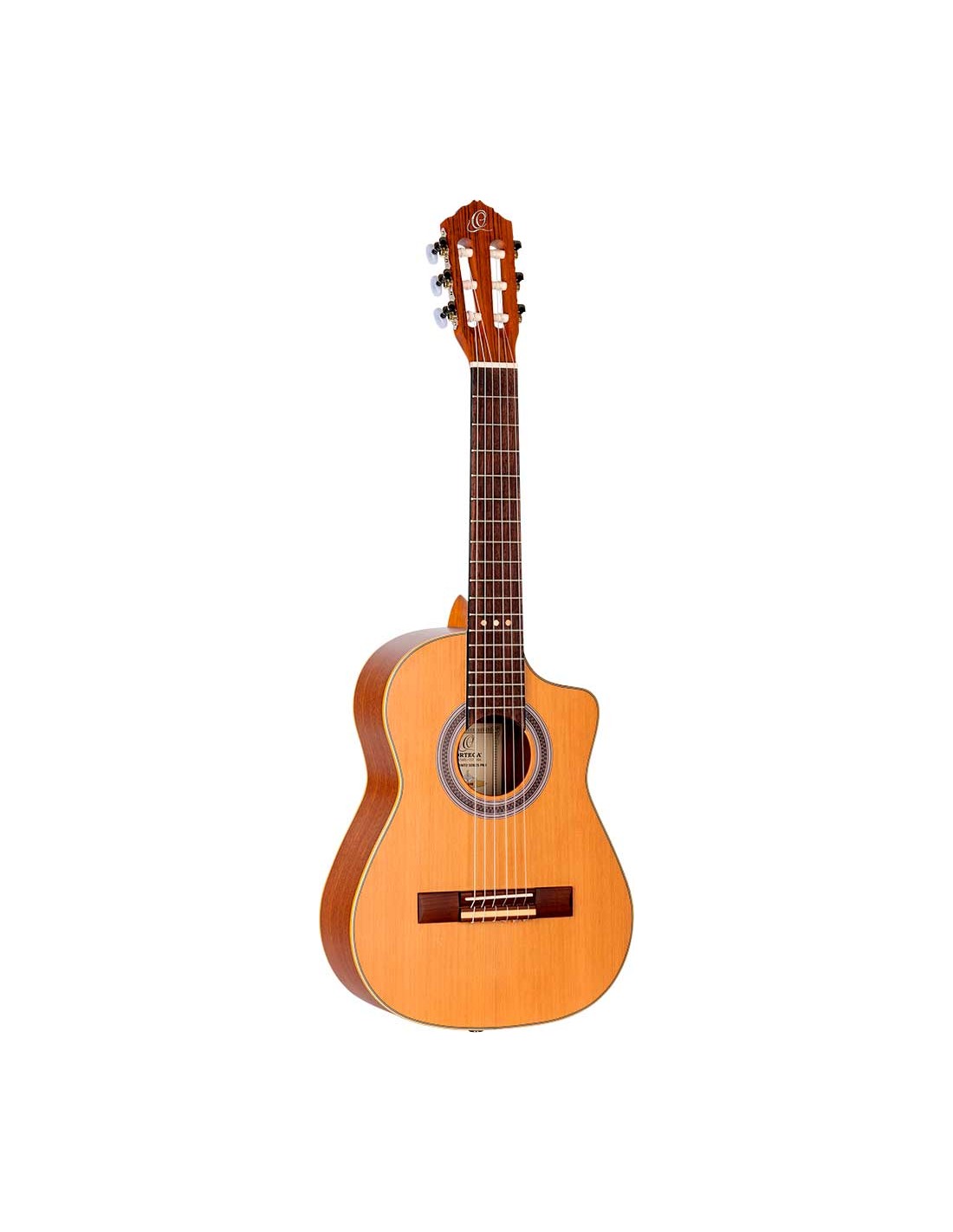 GUITARRA CLÁSICA 3/4 RQ39E Requinto electrificado de estilo Mexicano con cuerpo profundo. Tapa maciza de cedro en acabado natural satinado. Aros y fodo en sapele satinado. Cuerpo extra profundo de 110mm. Mastil de okoume en acabado gloss satin. Lamina de mogal en tapa. Diapasón y puente de nogal. Electrónica Ortega MagusGo. Funda deluxe incluida.