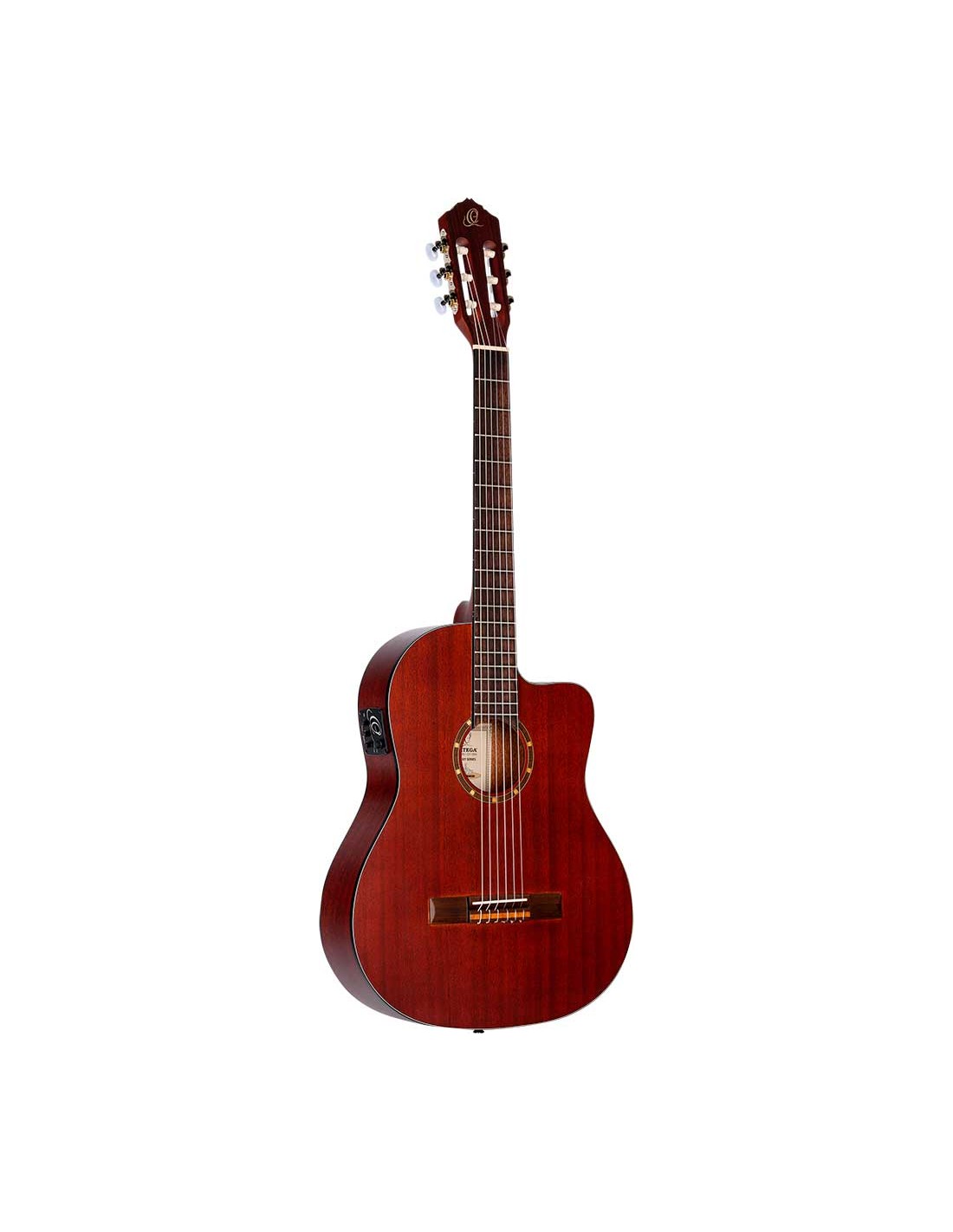 GUITARRA CLÁSICA CON PREVIO RCE125MMSN Guitarra electro clásica con cuerpo thinline y cutaway de la serie Family. Tapa, aros, fondo y mástil de caoba con acabado satinado en poro abierto. Diapasón y puente de nogal. Electrónica MagusPro con afinador. Alma de doble sentido. Funda deluxe incluida.