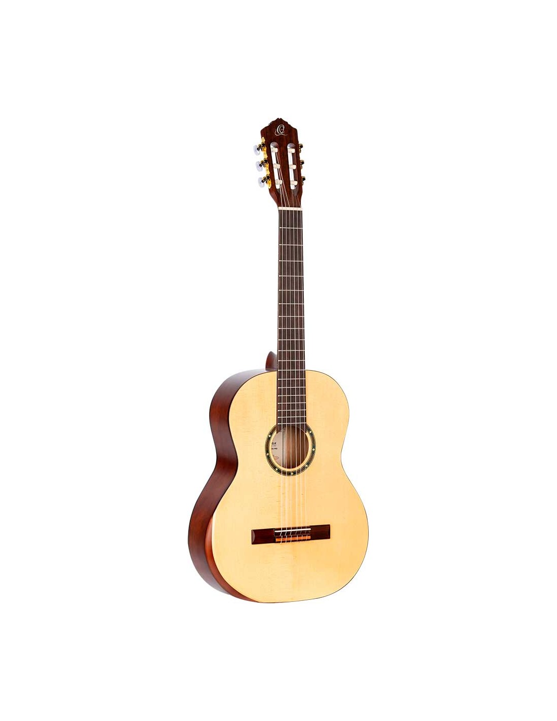 GUITARRA CLÁSICA 4/4 R55DLX Guitarra clásica 4/4 con tapa maciza para iniciados y estudiantes. Con rebaje estilo ``armrest´´ en su borde superior que aport auna mayor comodidad en la ejecución del brazo derecho al tocar sentado. Tapa maciza de abeto Engelmann con acabado natural satinado en poro abierto. Aros y fondo en madera de catalpa con acabado satinado. Mastil de nato en acabado satinado con alma de doble sentido. Binding en ABS negro. Lamina de nogal sobre pala. Diapasón y puente de nogal. Escala de 650 mm (25.59 pulgadas). Cejuela de 52 mm.