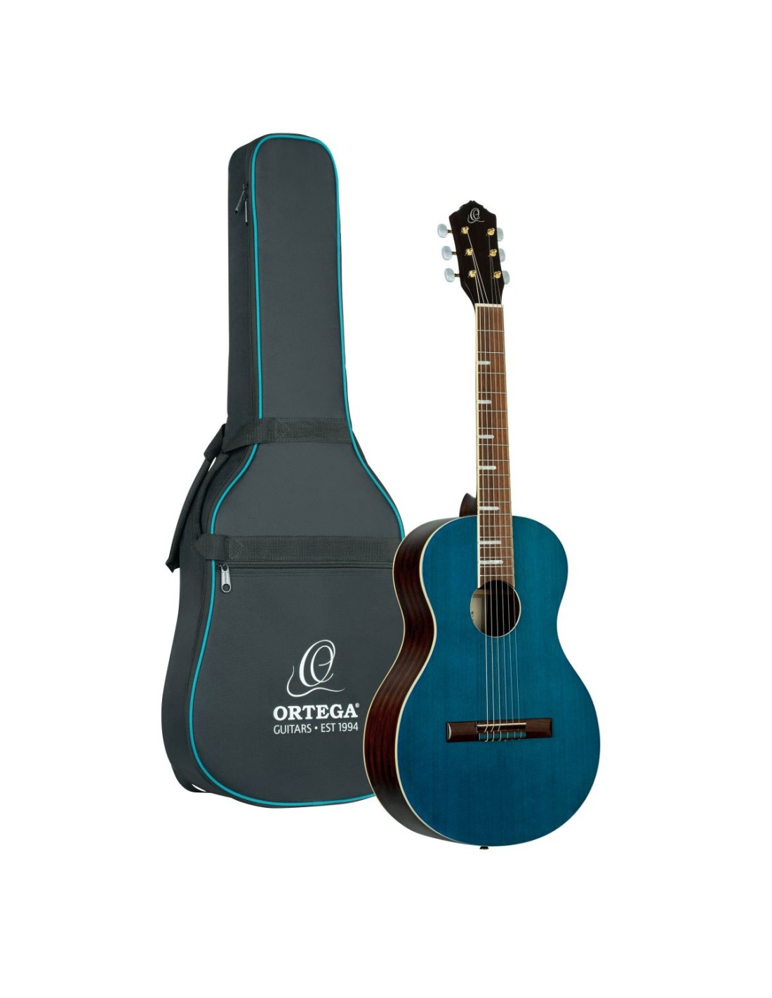 GUITARRA CLASICA 'La serie Ranger de Ortega Guitars es realmente cautivadora gracias a su llamativa tapa brillante. Las coloridas tapas, disponibles en negro, azul océano, rojo teñido y platino, complementan maravillosamente el fondo y los aros de caoba teñido oscuro. La serie Ranger de Ortega, del tamaño de un salón, presenta un mástil de escala corta adornado con incrustaciones de barras. Cada guitarra también viene acompañada de una funda de color a juego para mayor comodidad. Tamaño: 4/4 - Salón. Ancho de tuerca: 47 mm (1,85”). Escala: 630 mm (24,8''). Tapa: pícea, azul océano, acabado brillante Fondo y aros: caoba, brillante Mástil: satinado Nato con tinte oscuro Diapasón y puente: enchapado del clavijero de nogal caoba Encuadernación: parte superior e inferior de ABS marfil Clavijero de paleta acústica Incrustaciones en el diapasón de “barra” de perlas blancas Puente : Ortega 12 agujeros Alma: 2 vías Escala: Escala corta 630 mm (24,80”) Ancho de cejilla: 52 mm (2,05”) Incluye bolsa de transporte a juego'