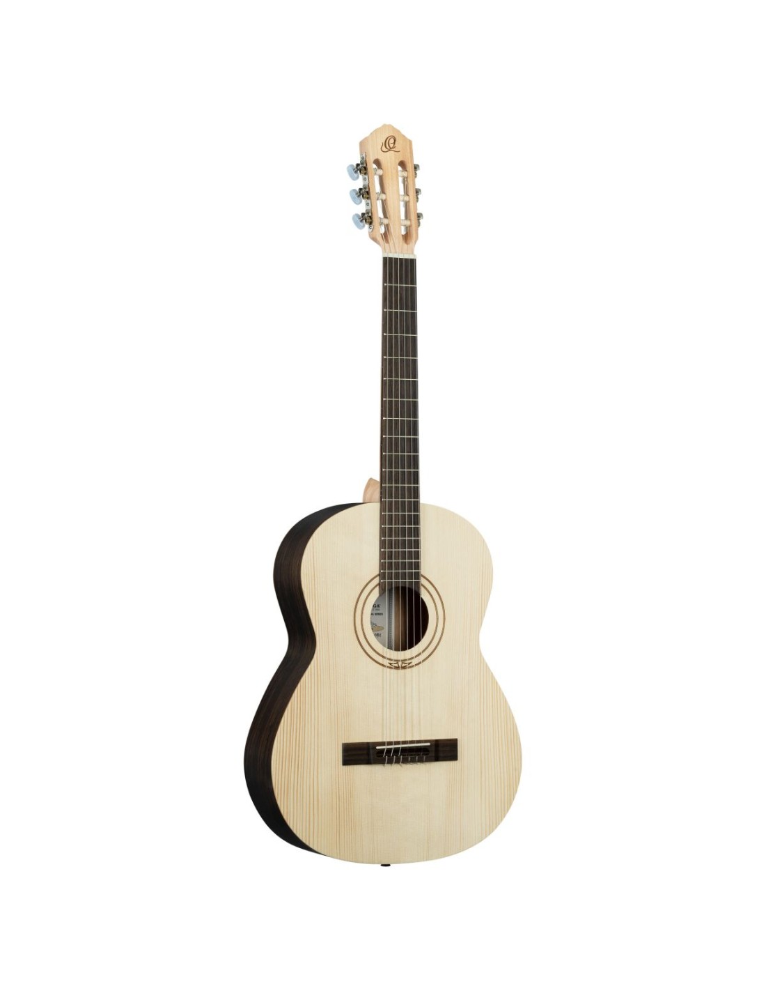 GUITARRA CLASICA Fabricada a mano en Portugal, la Serie Tradicional combina las mejores maderas tonales disponibles para la fabricación de guitarras. Esta serie ofrece un sonido y una estética excepcionales, todo a un precio muy accesible, lo que la convierte en una excelente opción para intérpretes de cualquier nivel. Tamaño: 4/4. Ancho de tuerca: 48 mm (1,89 pulgadas). Escala: 650 mm (25,59 pulgadas). Tapa: Abeto Engelmann macizo, poro abierto, acabado satinado Fondo y aros: Eucalipto envejecido, poro abierto, acabado satinado Mástil: Madera de haya, acabado satinado Diapasón y puente: Eucalipto envejecido Roseta y logotipo grabados con láser Puente: Ortega 12 agujeros Pasador de correa Escala: 650 mm (25,59”) Ancho de tuerca: 48 mm (1,89”)