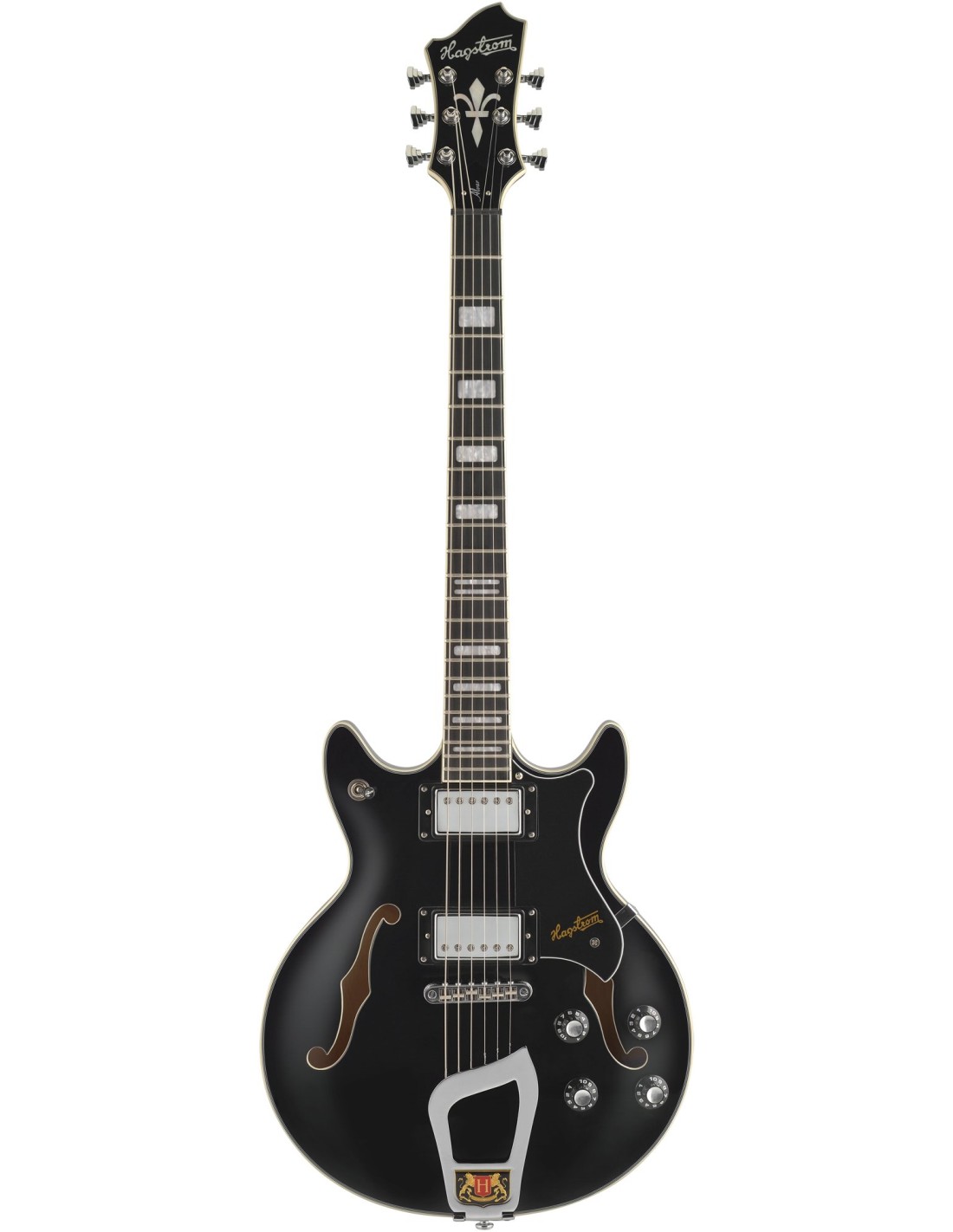 GUITARRA DE CUERPO SEMI-HUECO 'Alvar - Black Gloss, Contoured Ply-Maple Semi-Hollow body, Maple Set-Neck, Long throw T-O-M Bridge, Hagstrom Trapeeze, 2 x HJ50, 2 x Vol RC-Circuit, 2 x Tone, 3-Way Pick-up Toggle Switch, 24.75'' Scale Length, H-Expander Truss Rod, 18:1 Hagstrom Tuners, Resinator Fretboard'