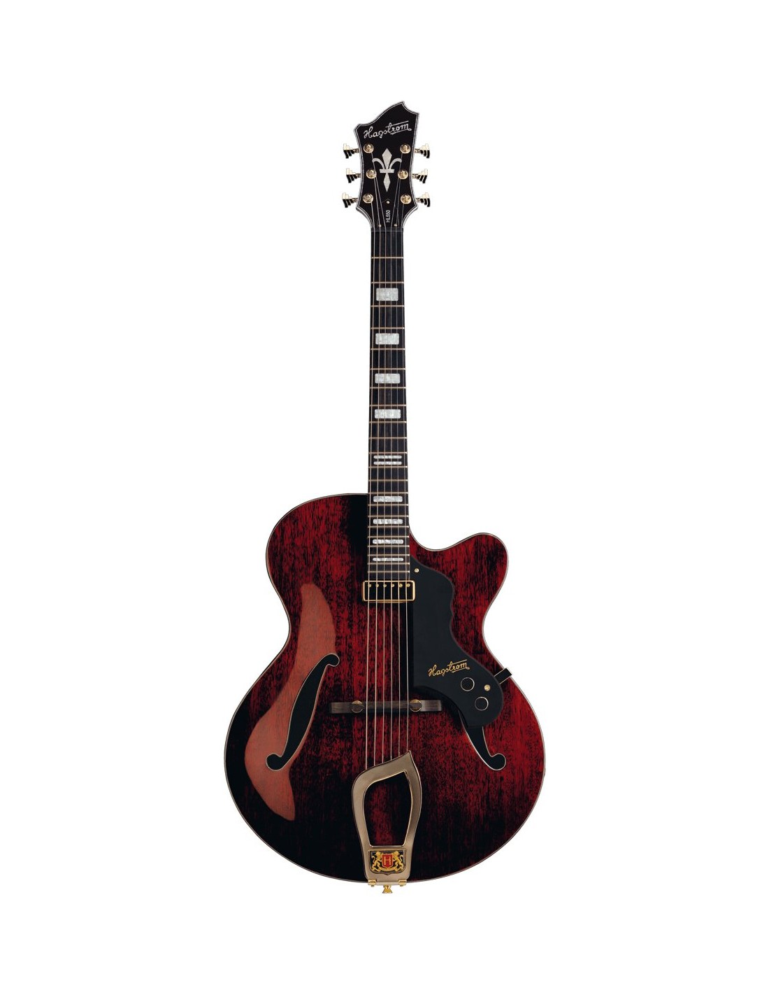 GUITARRA DE CUERPO HUECO 'HL-550 - Natural Mahogany Gloss - Contoured Mahogany Ply Hollow Body, Mahogany Set neck, Resinator Floating Bridge, Hagstrom Trapeeze, 1 x HF50, 1 x Vol RC-Circuit, 1 x Tone, Scale Length 24.75'', H-Expander Truss Rod, 18:1 Hagstrom Tuners, Resinator Fretboard'