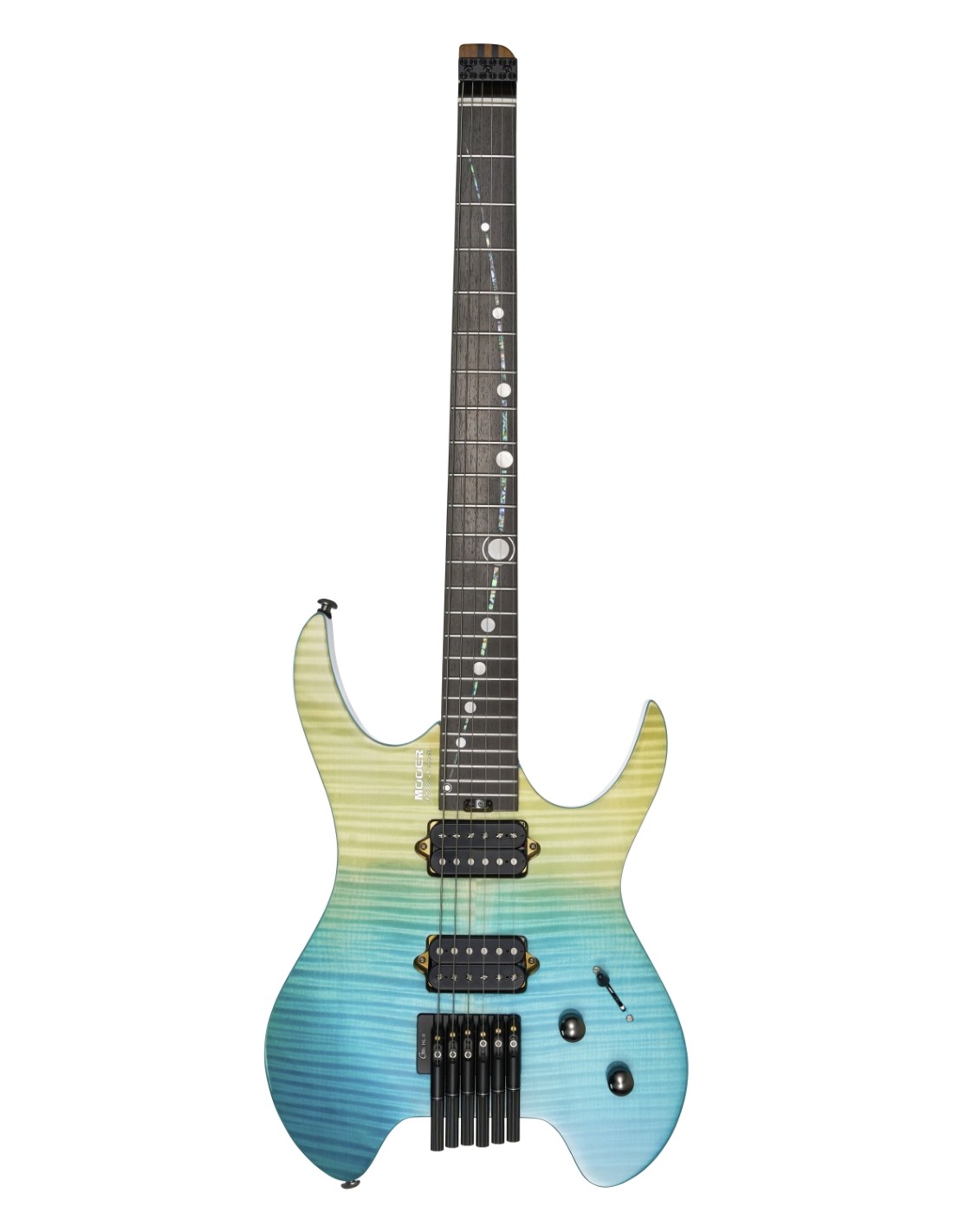 GUITARRA ELECTRICA CUERPO MACIZO Mooer MHL-100 Headless es una guitarra creada para guitarristas que quieren destacar tanto por su sonido como por su estética y comodidad. Su cuerpo de álamo con tapa de arce flameado y acabado en alto brillo está disponible en cinco acabados espectaculares —Purple Gradient, Green Gradient, Dreamy Blue, Purple Burst y Blue Burst— que aportan una presencia única en cualquier escenario.