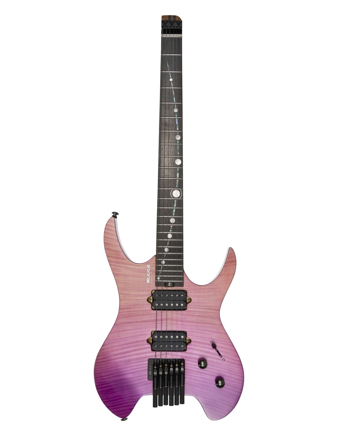 GUITARRA ELECTRICA CUERPO MACIZO Mooer MHL-100 Headless es una guitarra creada para guitarristas que quieren destacar tanto por su sonido como por su estética y comodidad. Su cuerpo de álamo con tapa de arce flameado y acabado en alto brillo está disponible en cinco acabados espectaculares —Purple Gradient, Green Gradient, Dreamy Blue, Purple Burst y Blue Burst— que aportan una presencia única en cualquier escenario.
