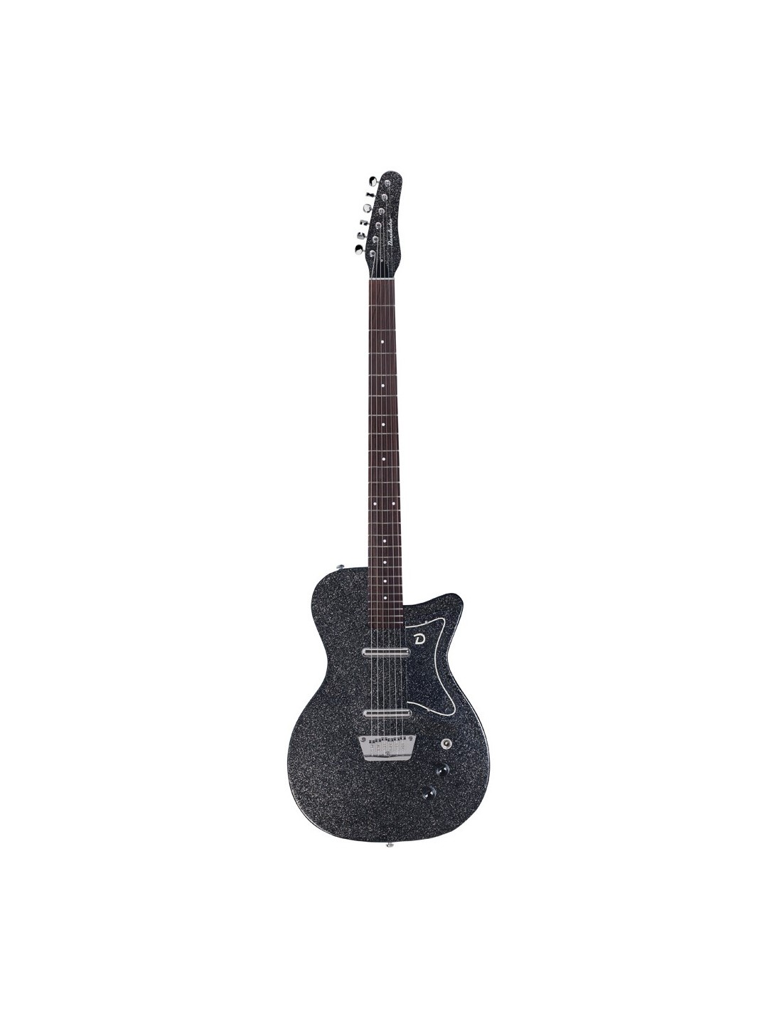 GUITARRA ELÉCTRICA RETRO 'Guitarra barítonoCuerpo single cutEscala 29,75''24 trastesPuente ajustable2 pastillas lipsticks de alta impedanciaControles de volumen y tonoSelector de 3 posicionesAcabado Black Metal Flake'