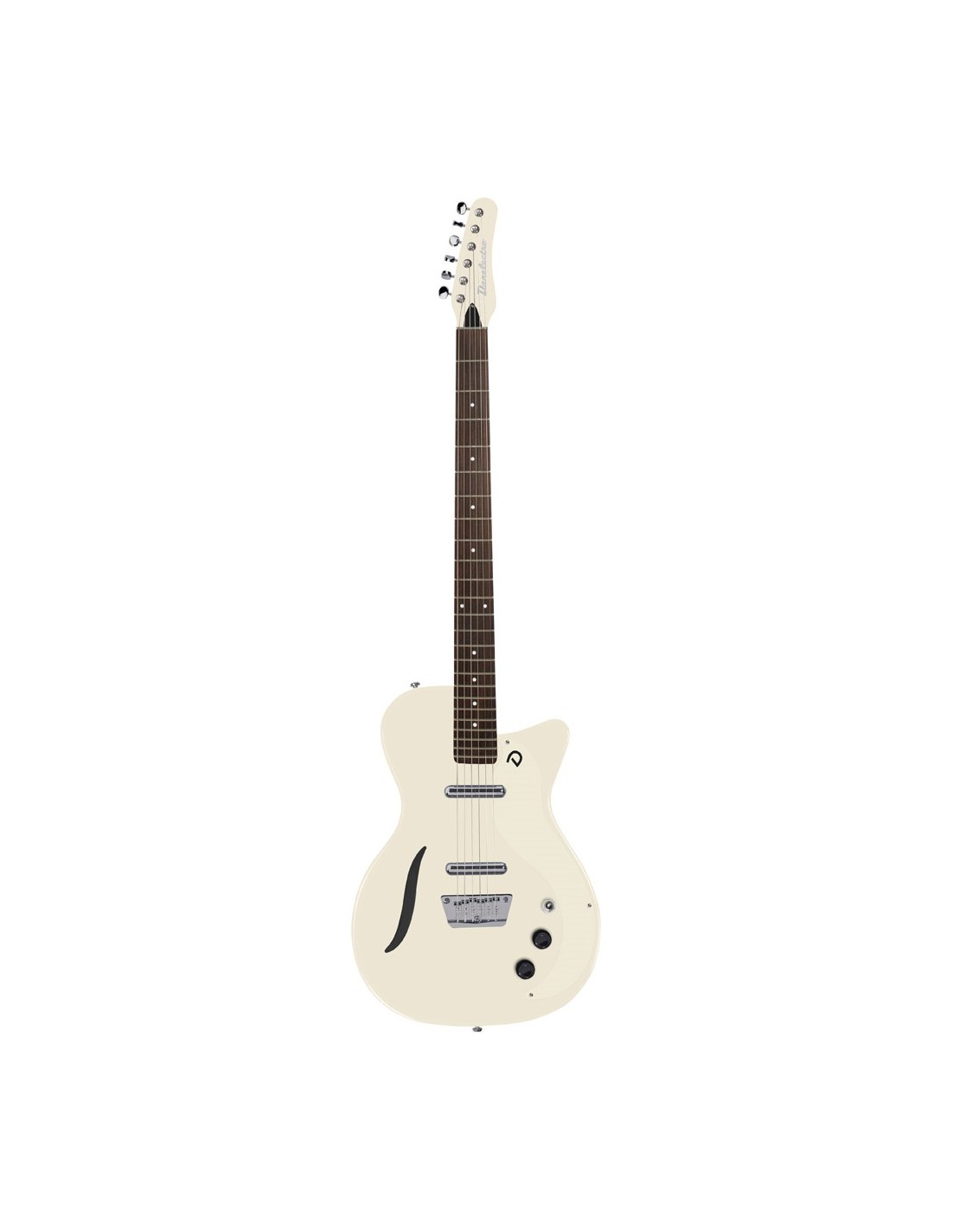 GUITARRA ELÉCTRICA RETRO 'Guitarra barítonoCuerpo single cut con agujero en SPala DolphinEscala 29,75''24 trastesPuente ajustable2 pastillas lipsticks de alta impedanciaControles de volumen y tonoSelector de 3 posicionesAcabado Vintage White'
