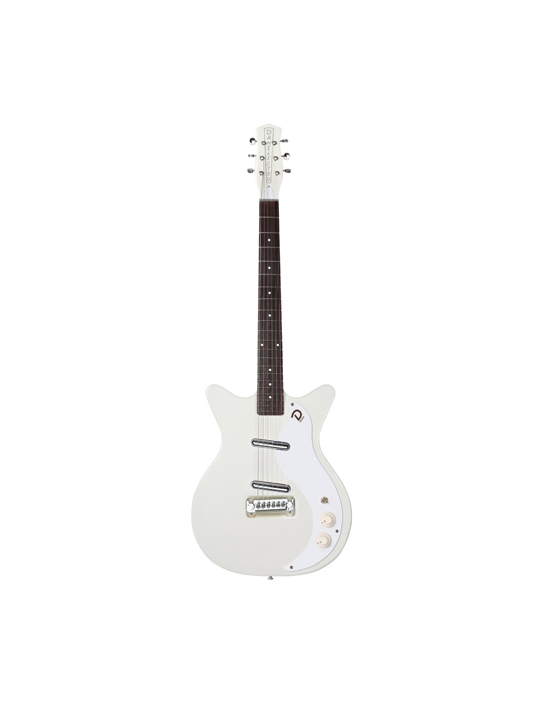 GUITARRA ELÉCTRICA RETRO 'Cuerpo shorthorn de doble cutawayEscala 25''21 trastesPuente ajustable2 pastillas lipsticksControles ''stacked'' de volumen y tonoSelector de 3 posicionesAcabado Aged White'