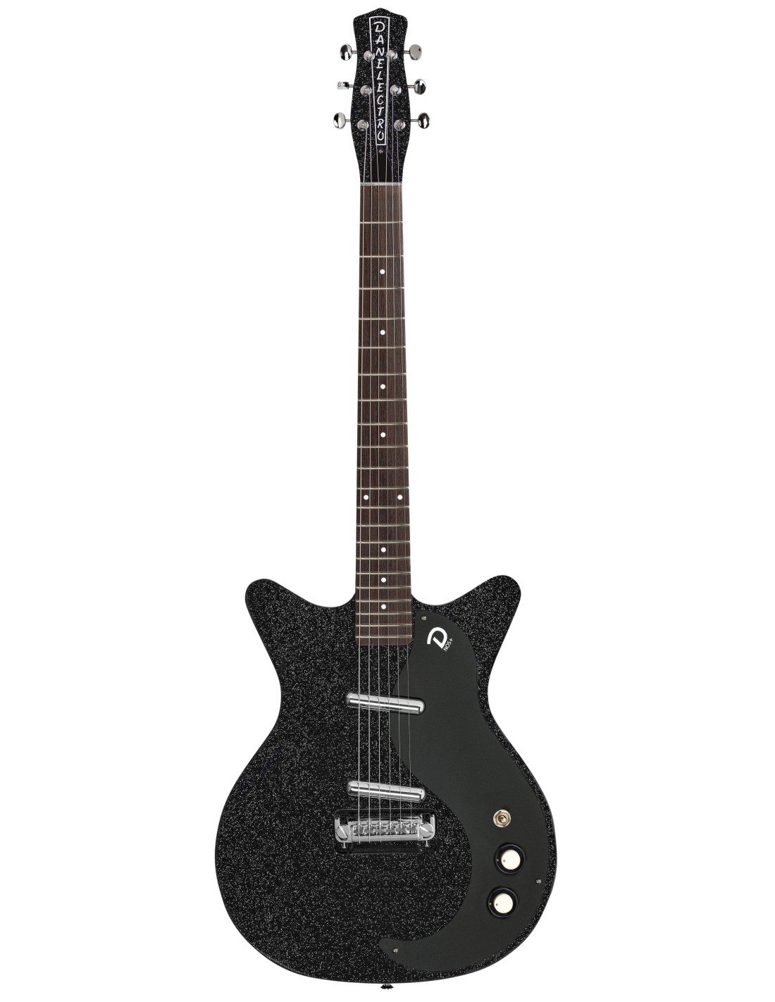 GUITARRA ELÉCTRICA RETRO 'Guitarra eléctrica. Cuerpo semihueco de masonite. Mástil atornillado de arce con perfil en C. Diapasón de Pau Ferro. 21 trastes. Escala de 25''. Alma de doble acción. Pastillas Lipstick NOS+. Controles stacked individuales de Volumen y Tono para cada pastilla. Selector de 3 posiciones. Puente Wraparound ajustable. Cejuela de aluminio. Acabado Black Metalflake. '