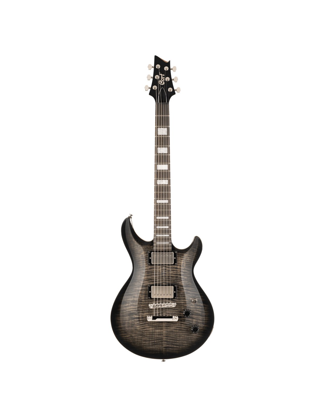 GUITARRA ELÉCTRICA DOUBLE CUT La Cort M600 combina un carácter tonal vintage con una refinada capacidad de ejecución moderna, ofreciendo tonos humbucker ricos y expresivos en un elegante cuerpo de doble hombro faltante. Con detalles de alta calidad como la tapa de arce flameado, el diapasón de palisandro y las clavijas de bloqueo, está diseñada para músicos que desean una sensación clásica y un rendimiento sin concesiones en el escenario.Construcción Mástil encoladoMaterial del cuerpo CaobaMaterial de la tapa Chapa de arce flameadoLongitud de la escala 24,75 628 mmMaterial del mástil CaobaForma del mástil Forma en CGrosor del mástil 1F: 20,0 mm, 12F: 22,0 mmMaterial del diapasón: palisandroRadio del diapasón: 12 R305Número de trastes: 22Incrustaciones: bloque de nácar blancoMaterial del cejilla: Graph Tech Black TUSQAncho de la cejilla: 1 11/16 43 mmBarra de ajuste Ajustable en dos direccionesClavijas Clavijas Cort Locking TunersPuente TuneOMatic con cordal Stop TailpieceConfiguración HHPastillas Juego de pastillas Cort Voiced Tone VTH59Electrónica 1 volumen, 1 tono, selector de 3 posicionesHardware NíquelCuerdas DAddario EXL110 .010 .013 .017 .026 .036 .046Color TBB Trans Black Burst