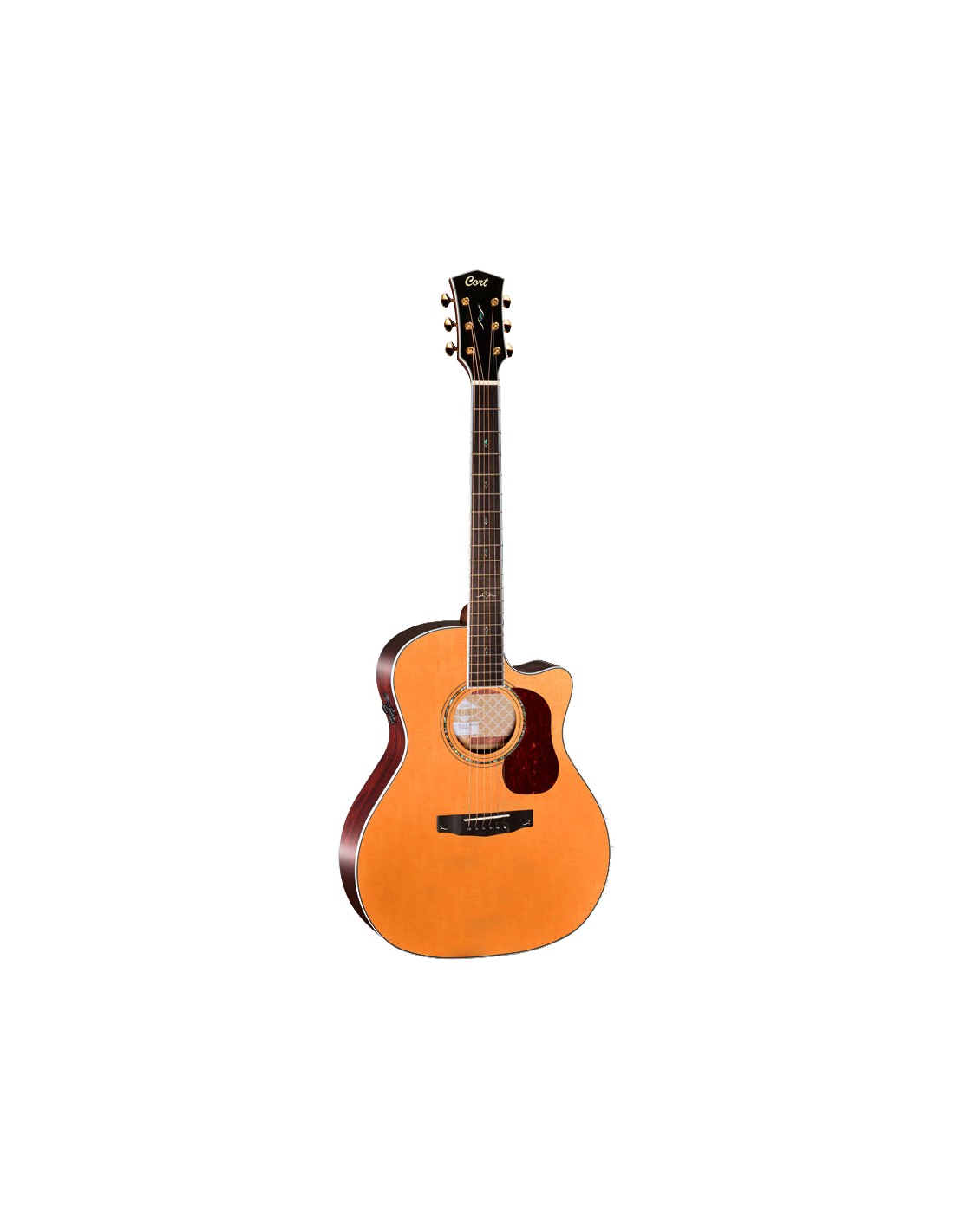 GUITARRA ELECTROACUSTICA DE 6 CUERDAS CON CUTAWAY 'Guitarra electro-acústica tipo Grand Auditorium con cutaway. Tapa sólida de abeto Master Grade. Tapa envejecida con proceso Aged To Vintage para mayor proyección de sonido. Aros y fondo sólidos de Pau Ferro. Mástil de caoba con refuerzo de nogal. Diapasón de ébano con 20 trastes. Escala 25,3'' pulgadas. Doble unión de refuerzo entre el mástil y el cuerpo. Clavijeros Deluxe Vintage Gold. Puente de ébano. Acabado nautral gloss. Funda semirrigida incluída. Previo Fishman® Flex Blend System.'