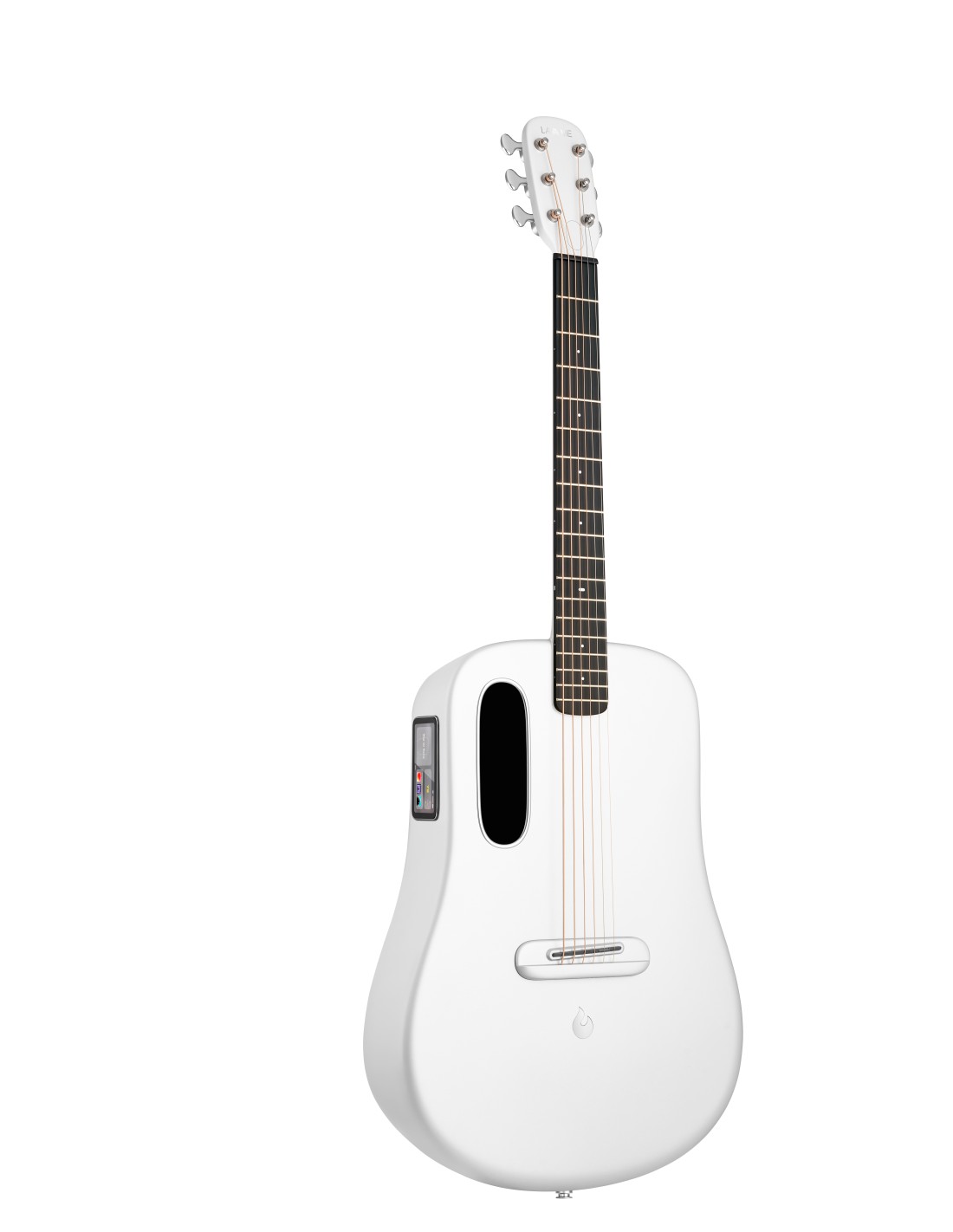 GUITARRA ELECTROACUSTICA DE 6 CUERDAS Guitarra revolucionaria construida en una pieza de fibra de carbono para la máxima resistencia a cambios de temperatura y humedad-Modelo de 38”-Mástil de fibra de carbono AirSonic 2 con perfil FlyNeck de C a D y escala de 24”-Diapasón de HPL con radio de 16” y 18 trastes-Ancho de la cejilla: 44 mm-Tapa con estructura de nido de abeja “Phantom Structure”-Cejuelas de TUSQ-Ajuste del alma en la pala-Sistema de amplificación independiente desde la propia guitarra Freeboost 2.0 para efectos, drum tracks, looper y canciones importadas en la memoria de la guitarra-Pantalla táctil de 3,5“con sistema operativo HILAVA. -Nuevo procesador DSP SHARC Architecture 32 Fixed Point +32/40 Floating-Point-Incorpora Looper, afinador, metrónomo, grabador y sistema de práctica de acordes, rasgueo, educación del oído y escalas-Efectos configurables de Reverb, Delay, Distorsión, Chorus, Tremolo, Phaser, Flanger, Octavador, Autowah, Pitch Shift, etc-Incluye patrones rítmicos de diversos estilos musicales-Conexión Wifi y Bluetooth-Carga con cable por USB-C o inalámbrica con el Space Charging Dock (no incluido)-Batería de Litio de 8000mAh/3.8V-Incluye juego de púas, cable USB-C y funda Space-Acabado White