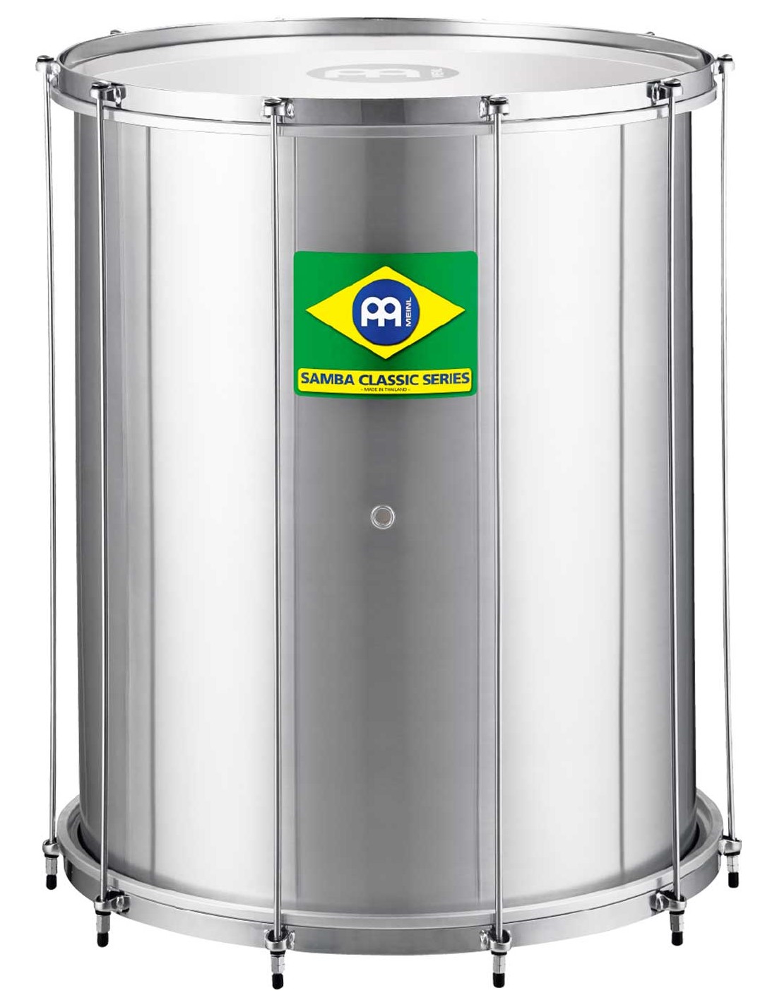 SURDO 'Surdo de 20'' X 24'', de aluminio. El Surdo Bahía Meinl SUC20 es un surdo de aluminio, con dimensiones de 20 ''x 24'', 10 tornillos de ajuste y viene con una llave de afinación. Este surdo respeta el diseño más clasico de Río montando un cuerpo completamente plano y parches clásicos de nylon blancos tanto arriba como abajo..