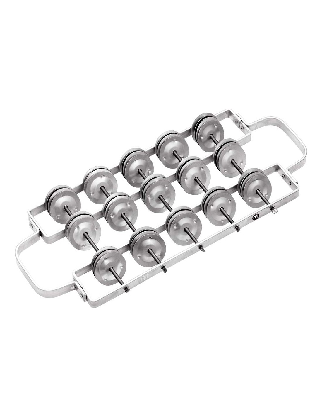 ROCAR Rocar mediano en aluminio. El rocar RC2-L de Meinl está construido con un marco de aluminio liviano que sostiene una serie de jingles también de aluminio. El resultado es un sonido claro que se proyecta de manera clara en la mezcla de percusiones, perfecto para cualquier banda de samba.