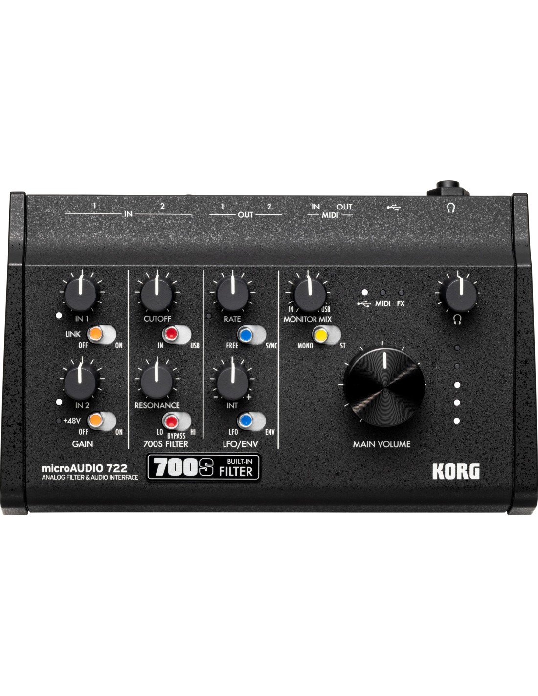 microAUDIO 722 es una interfaz de audio avanzada que combina calidad de estudio con el carácter del legendario filtro analógico de KORG. Pensada para creadores que buscan ir más allá de lo digital, integra control tonal expresivo y conectividad ampliada para flujos de trabajo híbridos.