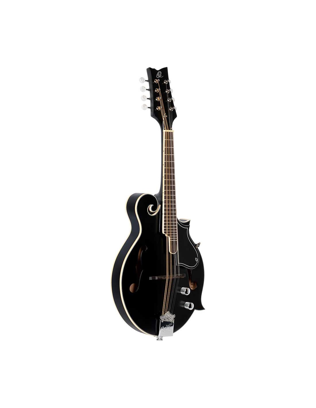 MANDOLINA Mandolina electrificada F-type. Tapa delantera de pícea. Tapa trasera de arce. Puente y diapasón de palisandro. 24 trastes. Pick-up piezo bajo selleta. Acabado: negro satinado / Binding blanco. Incluye funda y correa.