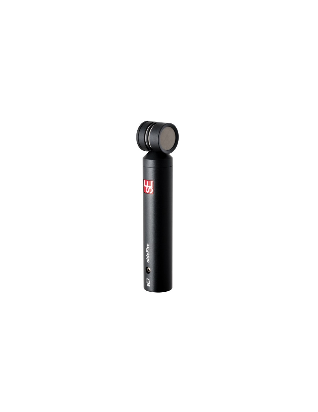 MICRÓFONO DE CONDENSADOR MEMBRANA PEQUEÑA El sE7 sideFire es una variante de nuestro micrófono de condensador de diafragma pequeño con electreto posterior sE7 de alta calidad, diseñado para una amplia gama de aplicaciones de sonido en estudio y en vivo, desde guitarras acústicas hasta pianos, baterías y más. Cuenta con una cápsula rotada que permite una microfonía cercana.