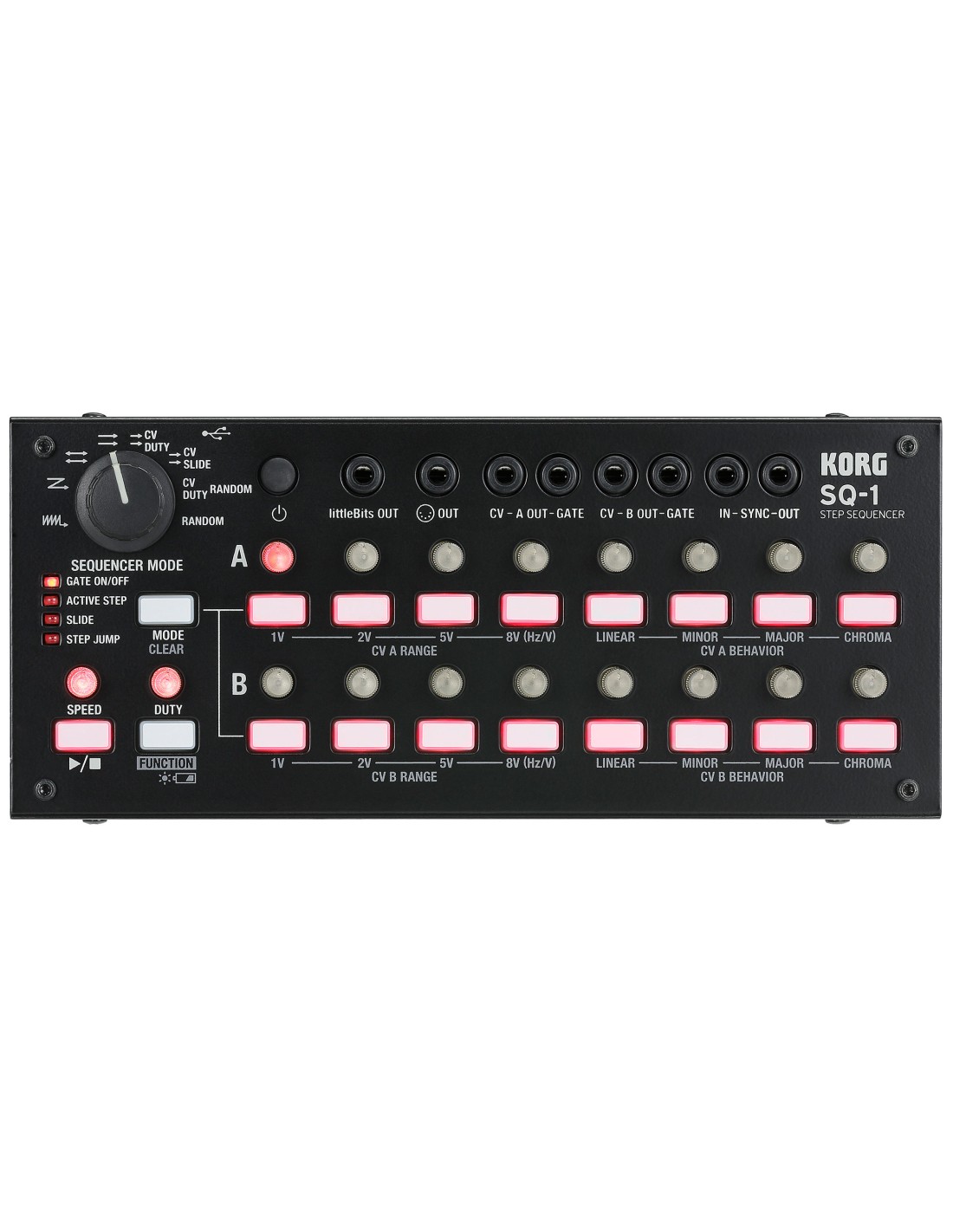 MODULO SECUENCIADOR-ARRANGER El SQ-1 es un compacto secuenciador por pasos con2 x 8 pasos. Su variedad de tomas de conexión le permite conectarse al MS-20 y a una variedad de sintetizadores diferentes. Los sintetizadores analógicos vintage o los recientes sintetizadores compactos pueden controlarse desde esta unidad. Alimentación: Dos pilas o baterías NO incluidas: mini DIN cable. Opciones: Cable Patch MS-CABLE-18.