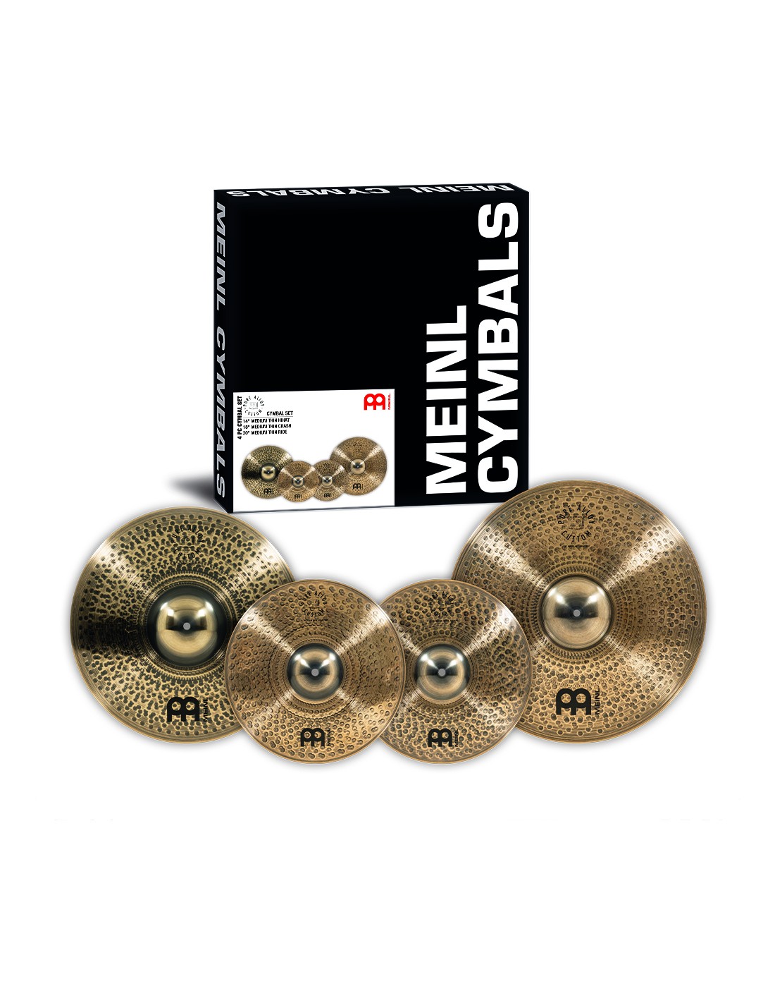PACK DE PLATOS Set de Hihat 14', Crash 18' y Ride 20', Serie Pure Alloy Custom. Los platos de la serie Pure Alloy Custom de Meinl reunen las caracterísitcas de los clásicos platos europeos pero con la articulación de un plato moderno. Con un martilleado pronunciado en su parte superior y completamente torneadosy brillanes en la inferior resultan expresivos y muy articulados. Estas características los hacen perfectos para muchos estilos musicales tales como el pop, rock, fusion, música etnica y todo lo que quede en medio.