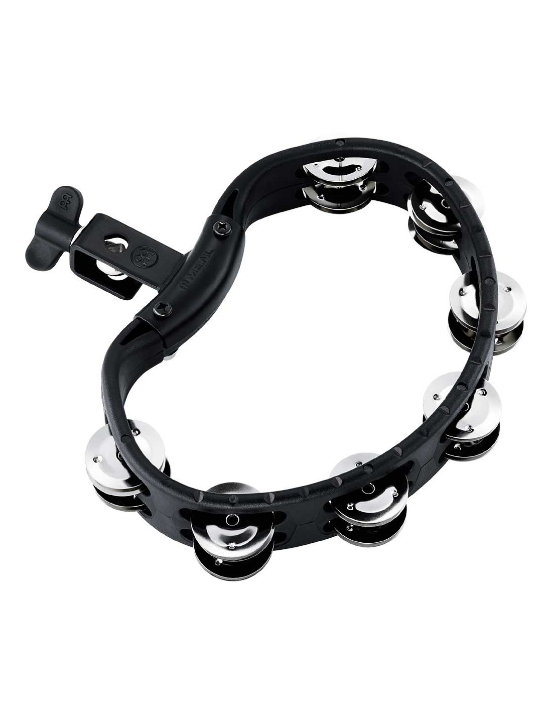 PANDERETA PARA BATERÍA Pandereta con grapa de 2 hileras. La Pandereta HTMT2BK presenta una superficie similar a un guiro en el casco y monta jingles de acero. El marco de plástico ABS tiene un engache para poder montarla en un pie de percusión o plato y la dureza suficiente como para golpear con fuerza y tocar tanto con la mano como con baquetas. Las sonajas de acero macizo tienen un sonido dulce y cálido con una proyección brillante y cortante. Esta pandereta es el complemento ideal para percusionistas así como para que cualquier otro miembro de la banda acompañe mil estilos.