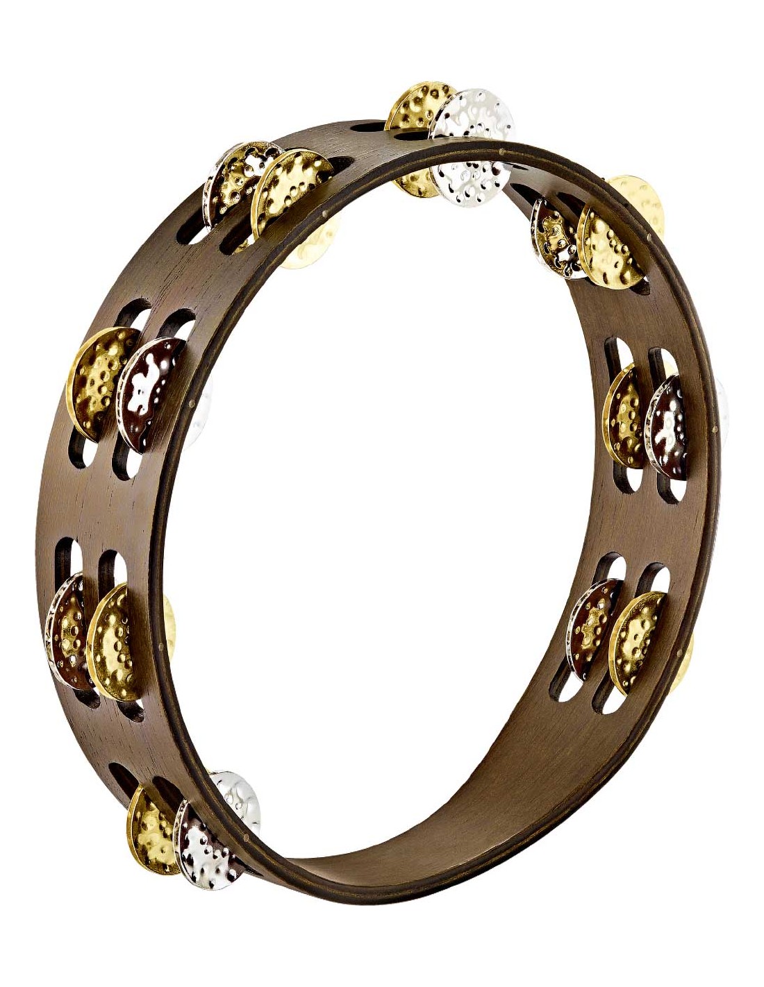 PANDERETA SIN PARCHE Pandereta de 2 fila de sonajas de acero y latón, madera africana en acabado marrón. La pandereta de mano meinl TA1VM-WB en marrón está hecha de un marco de madera y tiene ocho pares de sonajas de aluminio.