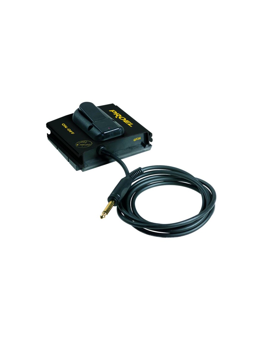 PEDAL CONMUTADOR PARA AMPLIFICADOR Pedal Proel GF26. Pedal interruptor On/Off GF22. Material pesado de ABS / ALUMINIO. Pies antideslizantes y ranuras ahuecadas. Incorpora 2 metros de cable con conector jack mono. Golden Feet es la nueva serie completa de pedales que combina el diseñoitaliano, la tecnología estadounidense y la viabilidad PROEL.