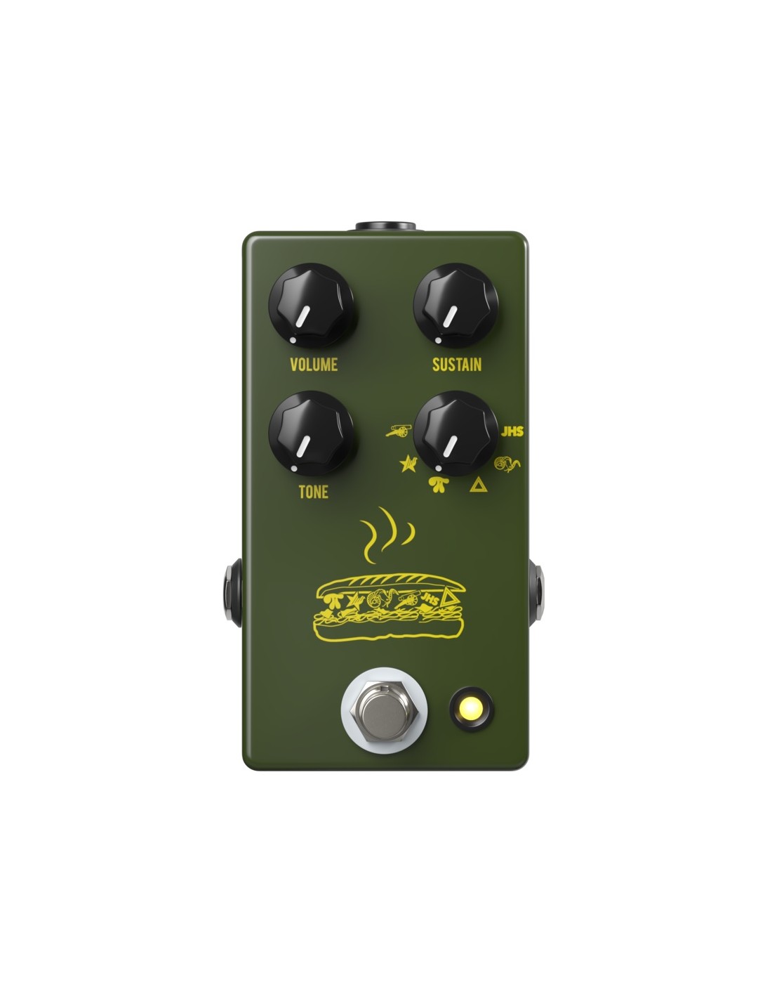 PEDAL FUZZ Con casi 50 años y con más de 30 versiones, el Big Muff es uno de los efectos más pioneros. El Muffuletta reproduce 5 de los más famosos circuitos y 1 versión propia del JHS. Todos completamente analógicos, hechos con componentes y formulas de los pedales originales. Puro tono analógico. El JHS Muff es el más potente, menos comprimido y con más rangos medios. Uno de las mejores para bajos. Los otros fuzz son: - 73 Rams Head 1973-1977 V2: Medios rangos muy amplios, menos ganancia y un timbre más oscuro. - Triangle 1969-1970 V1: Famoso por sus graves y es más articulado. - Pi 1977-1978 V3: No confundir con la versión del 2000. Muy agresiva. - Russian 1999-2009 V8: Presenta menos claridad y menos graves. - Civil War 1991-1993 V7: Bien conocida por añadir más rangos medios, brillo y poca ganancia.