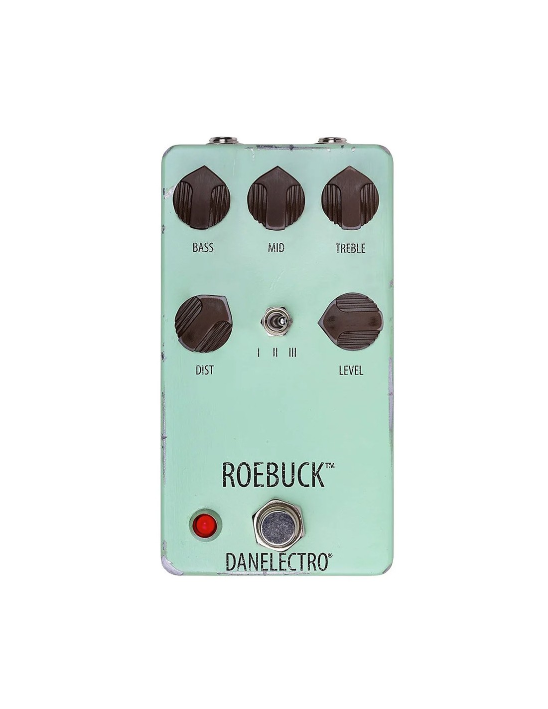 PEDAL DE DISTORSION 'Recrea un mítico pedal de distorsión MOSFET de los 90, utilizado por músicos de sesión de Nashville. Tiene el mismo tono y textura pero con 3 ricas opciones de ''clipping''. EQ de 3 bandas con opciones casi ilimitadas. Controles de Bass, Mid, Treble, Dist y Level. Switch I, II y III. True Bypass. Caja de metal. Funciona a 9V DC.'