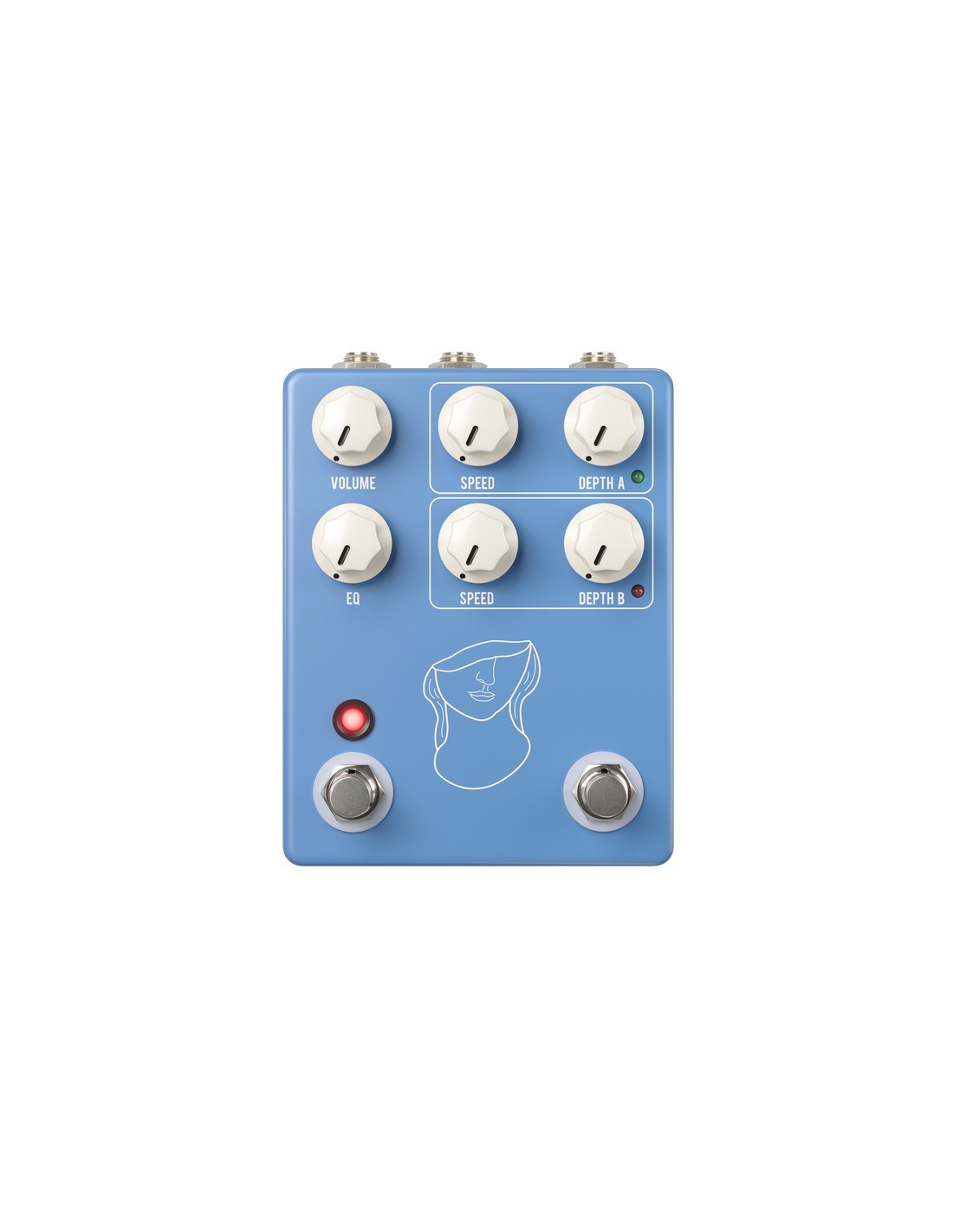 PEDAL DE VIBRATO El pedal más signature de JHS! El tono folk/rock de esta cantante, compositora y guitarrista estadounidense en este pedal de modulación.Si te encanta el sonido vintage de vibrato, no busques más. Salidas mono o stereo L/R, dos secciones independientes conmutables de Speed/Deep y una sección compartida de Volume/EQ para calibrar perfectamente tus sonidos de vibrato vintage.