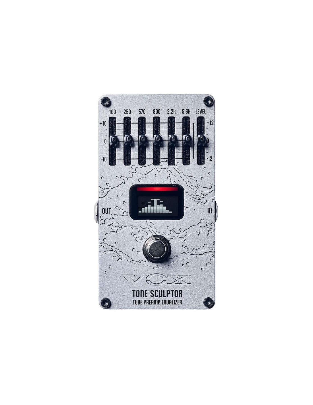 El Tone Sculptor es un ecualizador gráfico único, con un rango de frecuencia personalizado y un ancho de Q diferente a otros pedales de ecualización que puedas haber probado. Las bandas de frecuencia del Tone Sculptor están diseñadas específicamente para realzar los frecuencias más agradables de la guitarra. El uso de Nutube en la sección de preamplificación permite obtener los armónicos característicos y la compresión natural de las válvulas cuando se aumenta el nivel.