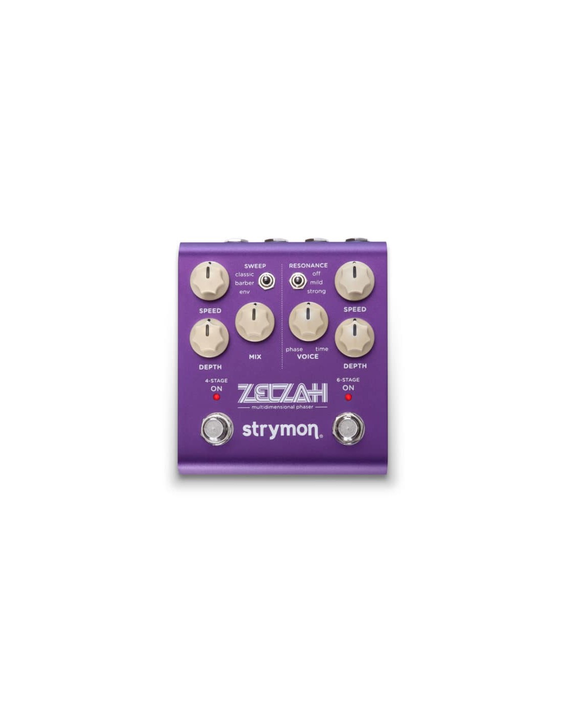 PEDAL DE FLANGER 'Pedal de efectos Para guitarra eléctrica Dos phasers completamente independientes que pueden funcionar por separado: en serie, en paralelo o divididos Se alimenta mediante una fuente de alimentación de 9 V DC incluida Bypass auténtico Dimensiones ancho x profundo x alto: 178 x 114 x 44 mm 7'' x 4,5'' x 1,75'' Fabricado en Estados Unidos Nota:No funciona con pilas Phaser de 6 etapas: Rango continuo desde phasing hasta flanging y chorus, todos con resonancia ajustable Phaser de 4 etapas con 3 modos de barrido: Classic LFO tradicional de subida y bajada con voces que cambian de carácter a medida que se ajusta el control DEPTH Barber LFO en constante aumento con polaridad ve o ve Envolvente fase ambiental sensible al tacto, accesibles de forma independiente a través de su propio interruptor de pedal y set de controles Control ''Voice'': Cambia entre fases y flanger / chorus Control EXP / MIDI: Conecta un Strymon MiniSwitch artículo n404546, no incluido para la selección remota de una configuración favoritaConecta un Strymon MultiSwitch Plus artículo n465346, no incluido para acceder a 3 presets Conecta un controlador MIDI a cualquiera de los dos: un conducto Strymon artículo n521393, no incluido o un cable Strymon MIDI EXP no incluido para acceder a 300 presets Controles: 6 etapas: Velocidad, Profundidad y Voz 4 etapas: Velocidad, Profundidad y Mezcla Interruptores: Entrada mono / estéreo 6 etapas: Resonancia 4 etapas: Barrido LEDs: 6 etapas encendido 4 etapas encendido Interruptores de pedal: Bypass de 6 etapas Bypass de 4 etapas Conexiones: Entrada Mono / Estéreo jack TRS de 1/4'' Salida Mono / Estéreo 2 jacks de 1/4'' Entrada EXP jack TRS de 1/4'' Entrada para fuente de alimentación con conector de barril de 5.5 x 2,1 mm y centro negativo'