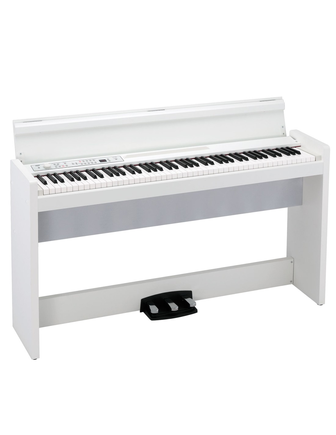 PIANO DIGITAL Nueva versión del piano digital LP-380, ahora con puerto MIDI/Audio a través de USB. El LP-380 es un piano digital que está diseñado para que su estilo realce la decoración de tu casa. Con sólo 26 cm deprofundidad, es lo suficientemente delgado para caber en cualquier lugar. La tapa de madera del teclado es plana en la parte superior, permitiendo que el instrumento sea un elemento más de la decoración de tu habitación cuando no lo estés tocando. Teniendo en cuenta la seguridad, la cubierta utiliza un mecanismo de cierre lento para asegurar que se cierra suavemente. El chasis delgado y elegante proyecta una sensación de estabilidad. El teclado RH3, tres pedales y altavoces de gran diámetro aseguran una excelente experiencia de interpretación de piano. - Teclado: 88 teclas (A0-C8), RH3 (Real Weighted Hammer Action 3, acción real contrapesada). Selección de Toque: Ligera, Normal, Fuerte. Tono: Transposición, Afinación. Temperamento: 9 tipos. Generación de Sonido: Piano Estéreo. Polifonía Máxima: 120 voces. Sonido: 30 (10 x 3 Bancos). Piano acústico x 5, Electric Grand, Piano eléctrico x 6, Clavicordio, Clavi x 2, Vibráfono, Marimba, Guitarra acústica, órgano Jazz x 3, órgano de tubosx 3, Cuerdas x 3, Coro 3. Efectos: Brilliance, Reverb y Chorus (3 niveles cada uno). Canciones Demo: 30 (canciones Demo de Sonido x 10, canciones Demo de Piano x 20). Metrónomo: Tempo, Compás, Acento, Sonido y Volumen. Conexiones: USB, Line Out, MIDI (In, Out), auriculares x 2, Pedal, Altavoces, DC19V. Amplificación: 22 Vatios × 2. Altavoces: 10cm x 2.Pedales: Damper*, Soft*, Sostenuto (* Soporta medio pedal). Controles: Power, Volume, Piano Song, Transpose, Function, Touch, Brilliance, Reverb, Chorus, Bank, Sound x 10, Up, Down, Metronome. Alimentación: DC 19 V, AC adaptador (incluido). Consumo eléctrico: 15W. Dimensiones: 1,355 × 351 × 772 mm.1,355 × 351 × 936 mm (con la tapa del teclado abierta). Peso: 37 kg (incluyendo soporte). Color: blanco. Elementos incluidos: adaptador AC, soporte de piano.