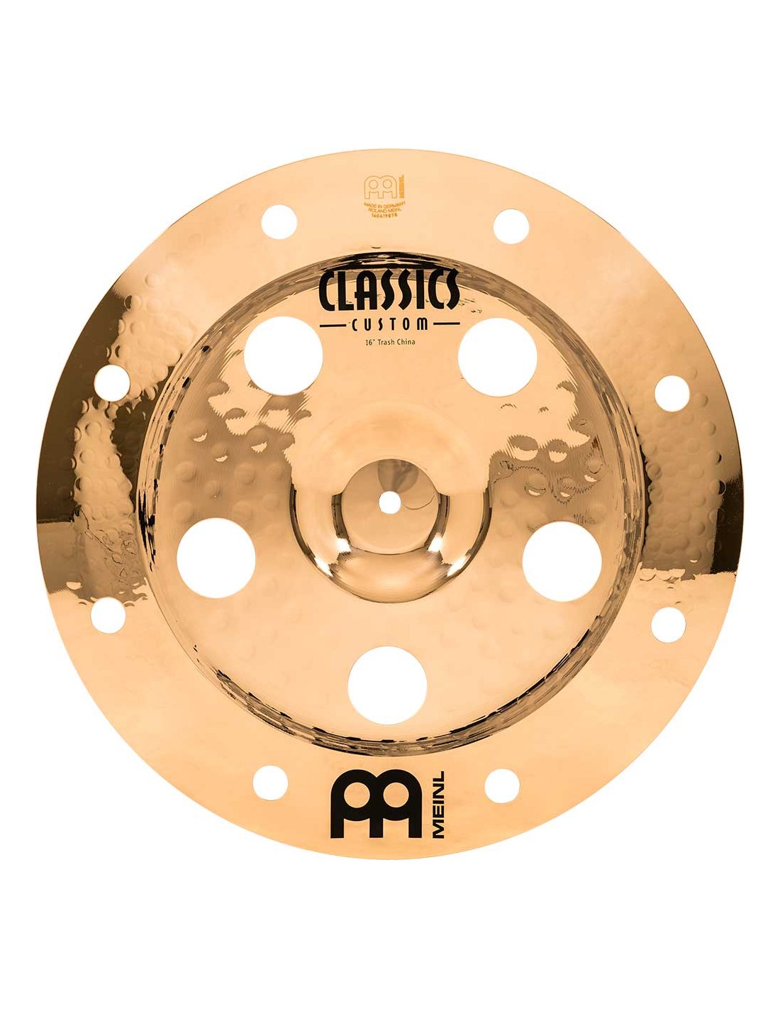 PLATO CHINA 'Trash China 16'' Serie Classics Custom. Los platos la serie Classics Custom se producen mecánicamente en Alemania sobre una aleación B10. En el proceso intervienen varias técnicas, tanto de presión como de martilleado computerizado. Además de ello reciben un lacado brillante que les infiere un acabado brillante espectacular.