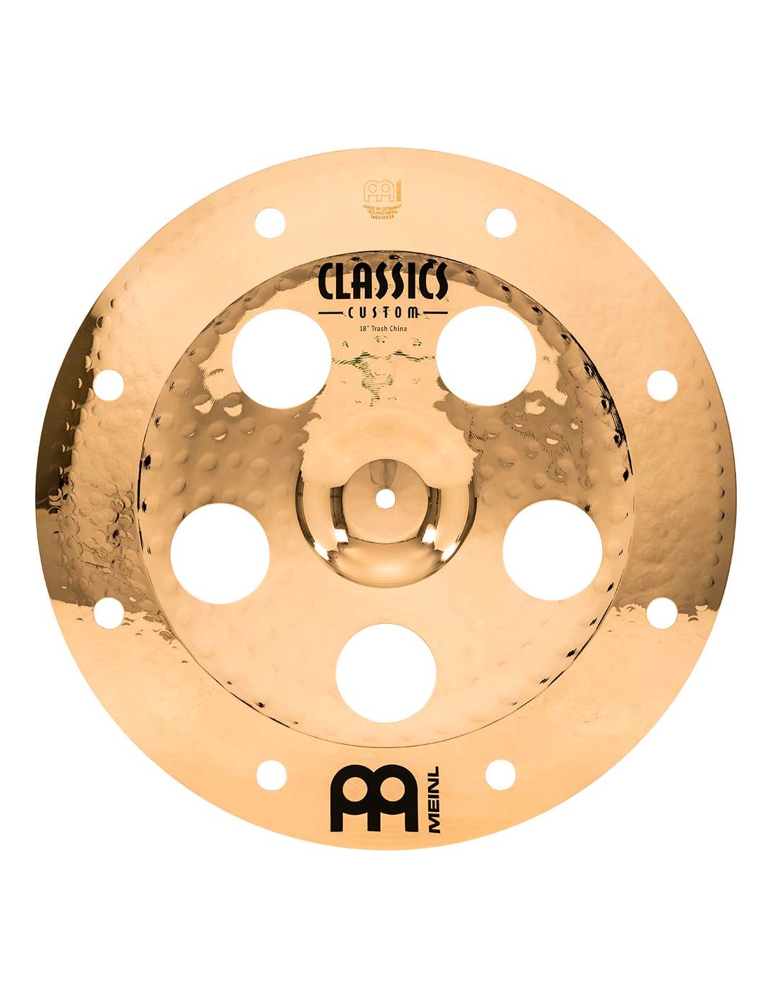 PLATO CHINA 'Trash China 18'' Serie Classics Custom. Los platos la serie Classics Custom se producen mecánicamente en Alemania sobre una aleación B10. En el proceso intervienen varias técnicas, tanto de presión como de martilleado computerizado. Además de ello reciben un lacado brillante que les infiere un acabado brillante espectacular.