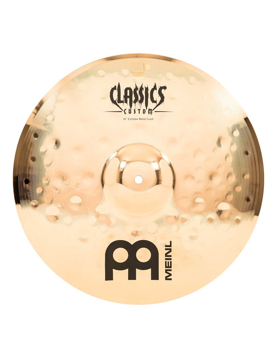 PLATO CRASH 'Crash 16'', Serie Classics Custom Extreme Metal. Los platos la serie Classics Custom Extreme Metal se producen mecánicamente en Alemania sobre una aleación B10 y con un peso ligeramente superior a los Classics Custom que les proporciona una potencia realmente grande. En el proceso intervienen varias técnicas, tanto de presión como de martilleado computerizado. Además de ello reciben un lacado brillante que les infiere un acabado brillante espectacular.