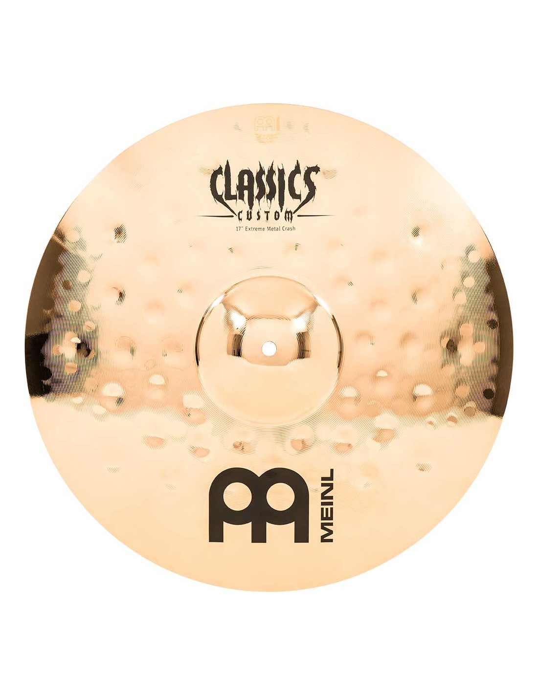 PLATO CRASH 'Crash 17'', Serie Classics Custom Extreme Metal. Los platos la serie Classics Custom Extreme Metal se producen mecánicamente en Alemania sobre una aleación B10 y con un peso ligeramente superior a los Classics Custom que les proporciona una potencia realmente grande. En el proceso intervienen varias técnicas, tanto de presión como de martilleado computerizado. Además de ello reciben un lacado brillante que les infiere un acabado brillante espectacular.