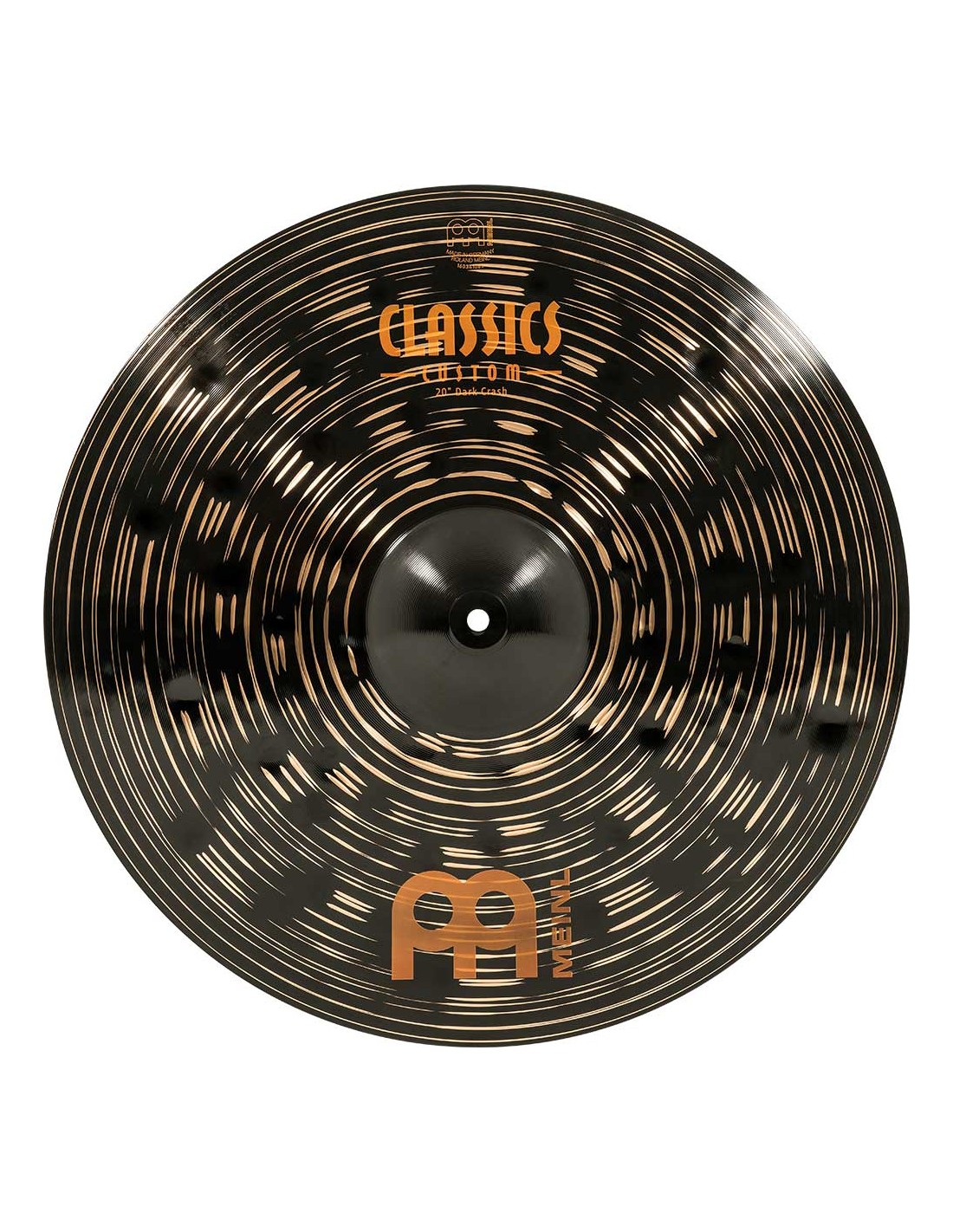 PLATO CRASH 'Crash 20'', Serie Classics Custom Dark. Los platos la serie Classics Custom Dark se producen mecánicamente en Alemania sobre una aleación B10. En el proceso intervienen varias técnicas, tanto de presión como de martilleado computerizado. Además de ello tiene un acabado negro brillante que les infiere una imagen espectacular y un sonido particular.