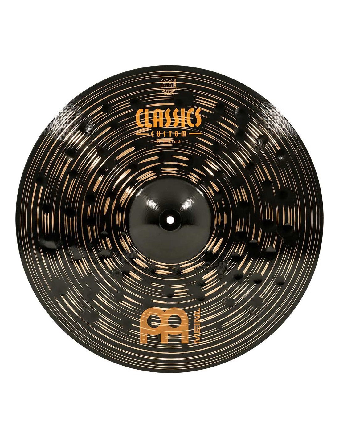 PLATO CRASH 'Crash 21'', Serie Classics Custom Dark. Los platos la serie Classics Custom Dark se producen mecánicamente en Alemania sobre una aleación B10. En el proceso intervienen varias técnicas, tanto de presión como de martilleado computerizado. Además de ello tiene un acabado negro brillante que les infiere una imagen espectacular y un sonido particular.