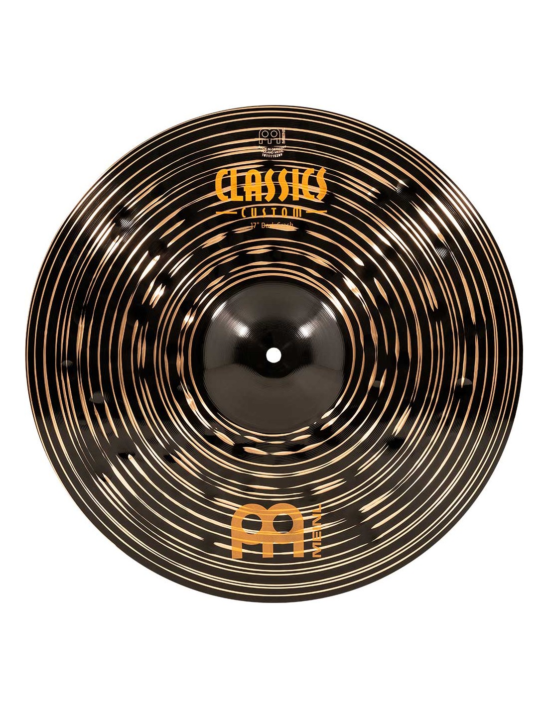 PLATO CRASH Crash 17'' Serie Classics Custom Dark. Los platos la serie Classics Custom Dark se producen mecánicamente en Alemania sobre una aleacion B10. En el proceso intervienen varias técnicas, tanto de presion como de martilleado computerizado. Además de ello tiene un acabado negro brillante que les infiere una imagen espectacular y un sonido particular.