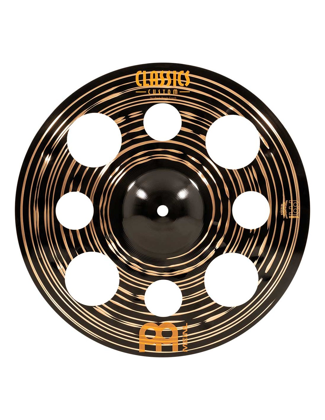 PLATO CRASH Trash Crash 14'' Serie Classics Custom Dark. Los platos la serie Classics Custom Dark se producen mecánicamente en Alemania sobre una aleacion B10. En el proceso intervienen varias técnicas, tanto de presion como de martilleado computerizado. Además de ello tiene un acabado negro brillante que les infiere una imagen espectacular y un sonido particular.