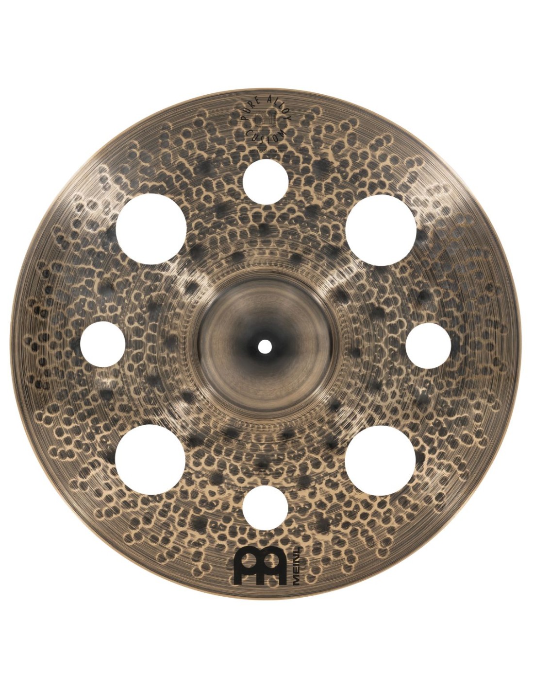 PLATO CRASH Este Trash Crash con agujeros a¤adidos explota con un ataque r pido y tiene un sustain corto. Un gran platillo para acentos r pidos y bajos. Pure Alloy Custom es una serie £nica que ofrece una tonalidad suave, una gran sensaci¢n bajo la baqueta y una apariencia distintiva en cualquier kit de bater¡a. Producen un ataque ligeramente m s suave con un cuerpo m s c lido y un decaimiento r pido, al tiempo que mantienen el brillo brillante y el sustain por los que se conoce a Pure Alloy. Fabricado en Alemania con aleaci¢n de bronce puro y martillado en forma. Para que estos platillos se destaquen visualmente, aplicamos un acabado en la parte superior llamado bronce ahumado personalizado y pulimos la parte inferior hasta obtener un acabado brillante.